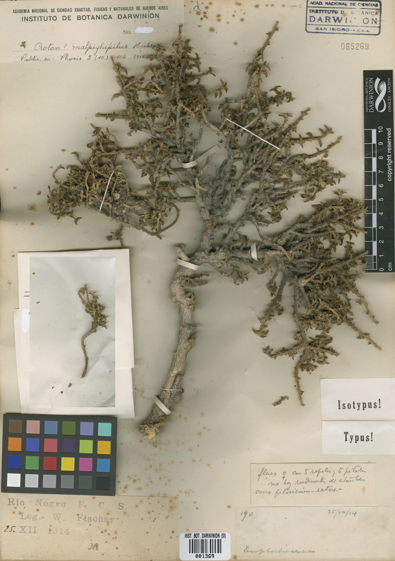 Material Tipo: Basónimo: Croton malpighipilus Hicken