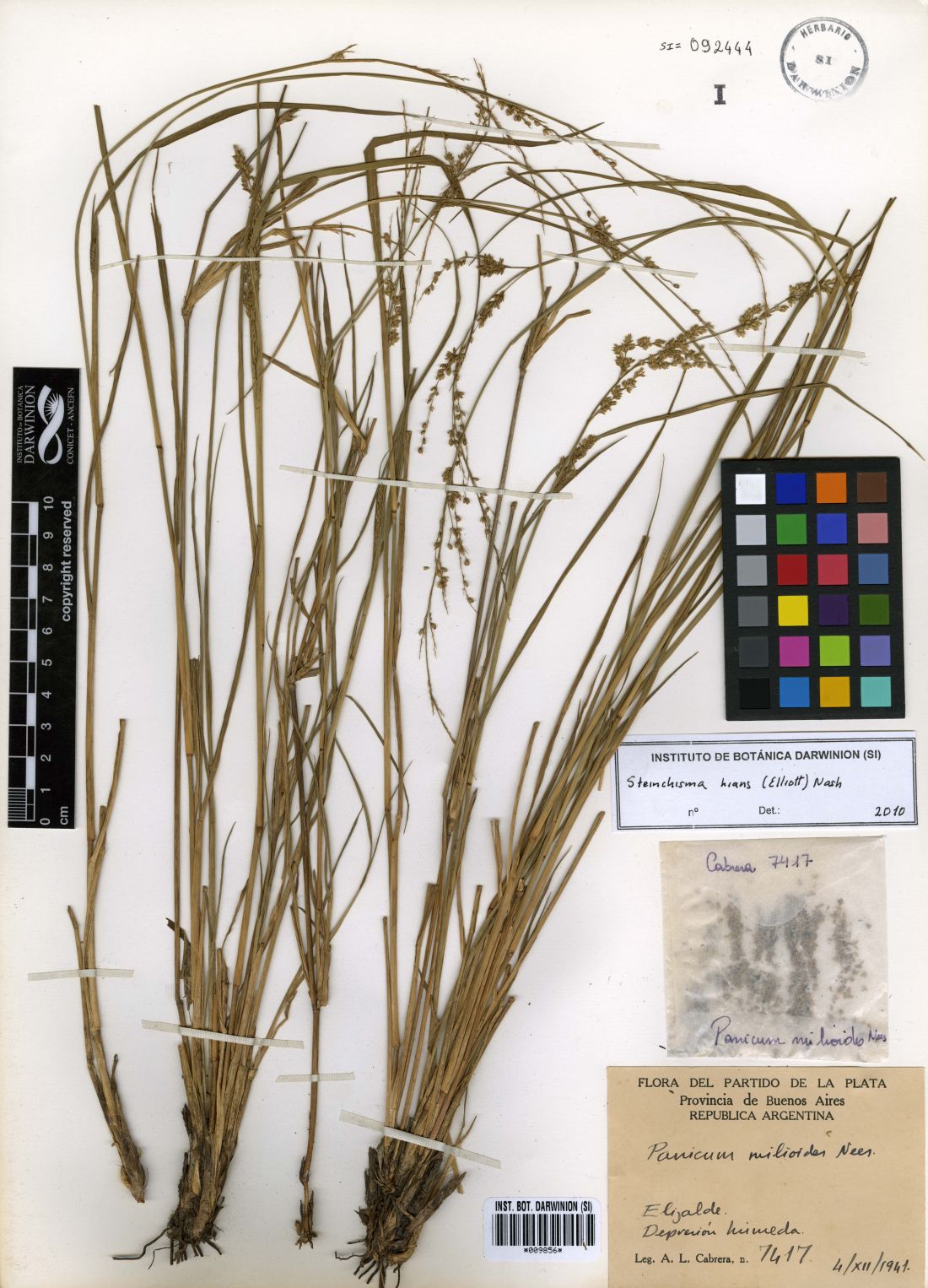 Observaciones: Steinchisma hians es la especie con más amplia distribución y variabilidad dentro del género; siendo un elemento frecuente en campos húmedos desde Estados Unidos de América hasta Argentina. Se caracteriza por presentar pálea inferior conspicuamente expandida a lo ancho a la madurez de la espiguilla.