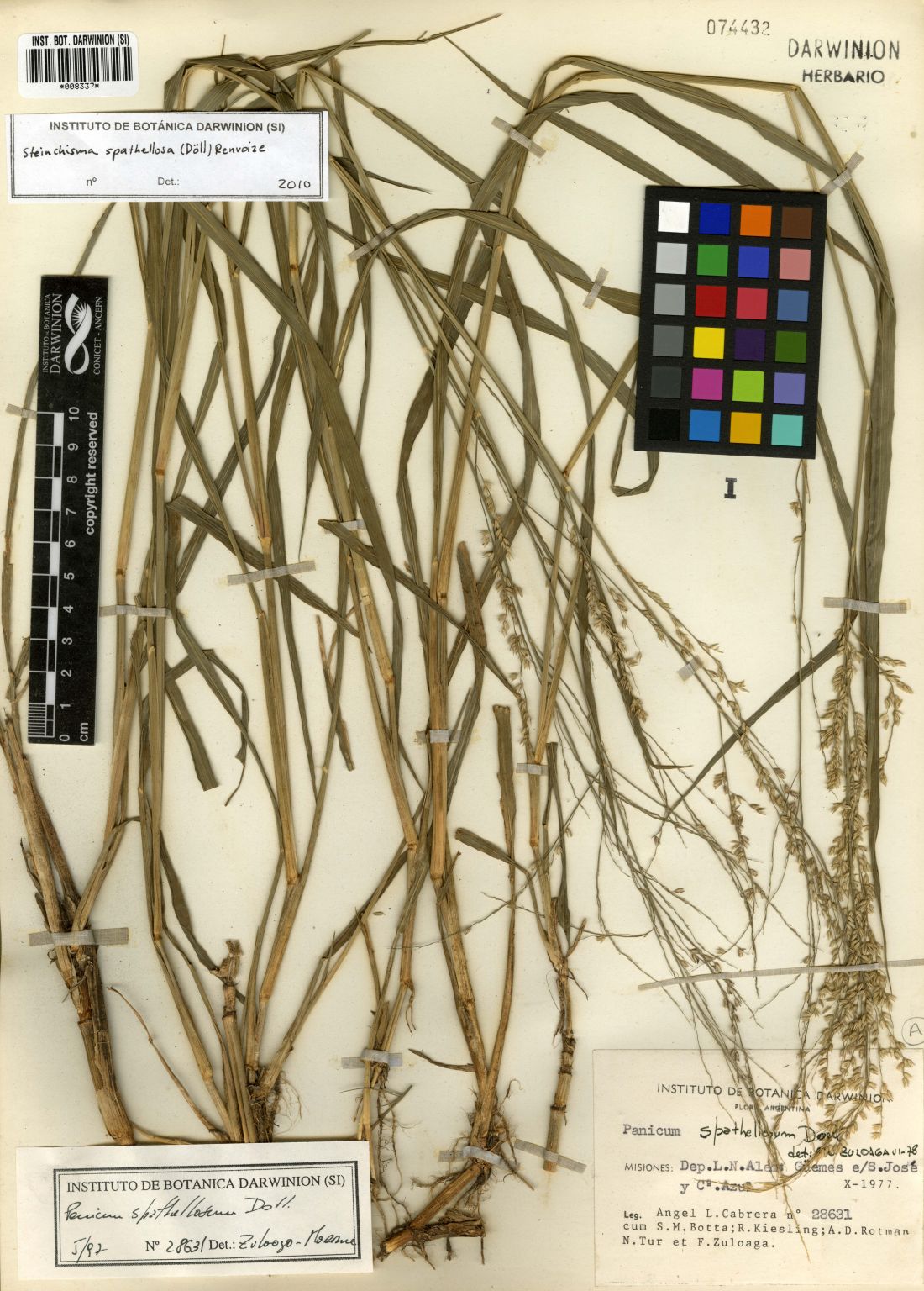 Plantas perennes, herbáceas, largamente rizomatosas, rizomas hojosos; cañas de 60-120 cm de alto, radicantes y ramificadas en los nudos inferiores, luego erguidas; entrenudos de 3,5-20 cm de largo, glabros, comprimidos, huecos; nudos glabros, comprimidos, violáceos; vainas de 5-14 cm de largo, mayores o menores que los entrenudos, glabras, verdosas a violáceas, con los bordes membranáceos, pestañosos en su parte superior; lígulas de 0,4-0,7 mm de largo, membranáceas, cortamente laciniadas o ciliadas en la parte superior, con pelos por detrás en la base de la lámina; cuello glabro, pajizo; láminas de 13-35 cm x 3-10 mm, linear-lanceoladas, planas o con los bordes involutos, de base angostada y ápice largamente atenuado, pilosas hacia la base de la cara adaxial, glabras en el resto de la superficie, los bordes lisos. Inflorescencias terminales exertas; pedúnculos de 10-30 cm de largo, cilíndricos, glabros; panojas de 10-28 x 2-15 cm, laxas, difusas a contraídas; ramificaciones de segundo orden divergentes del raquis, alternas o subopuestas, lisas, onduladas, las de tercer orden cortas, con espiguillas apretadas sobre los ejes; eje principal escabroso, anguloso, pulvínulos glabros; pedicelos de 0,4-2 mm de largo escabriúsculos a glabros, claviformes. Espiguillas de 3-3,6 x 0,7-0,9 mm, largamente elipsoides, glabras, verdosas o con tintes violáceos; gluma inferior de 1,2-1,6 mm de largo, ovada, ? del largo de la espiguilla, de ápice obtuso, 1-3-nervia, el nervio medio escabroso hacia la porción superior; gluma superior de 2,2-2,8 mm de largo, llegando o no a cubrir al antecio superior, 3-5-nervia, nervio medio escabroso; lemma inferior de 2,8-3,3 mm de largo, 3-5-nervia, de ápice agudo; pálea inferior de 2,5-3,3 x 0,6-0,8 mm, papirácea, con alas manifiestas, no sobresaliendo a lo ancho a la madurez, los bordes cortamente ciliados a glabros, el ápice obtuso; flor inferior estaminada; anteras 3, de 1,2-2 mm de largo, anaranjadas; lodículas 2; antecio superior de 2,5-3 x 0,6-0,7 mm, largamente ovoide, glabro, membranáceo, blanquecino, papiloso, de ápice agudo; lemma 3-nervia; lodículas 2, conduplicadas; estaminodios 3, de 0,4-0,6 mm de largo; cariopsis de 1,6-1,8 x 0,7 mm, elipsoide, castaña; hilo oblongo; embrión menos de ½ del largo de la cariopsis.