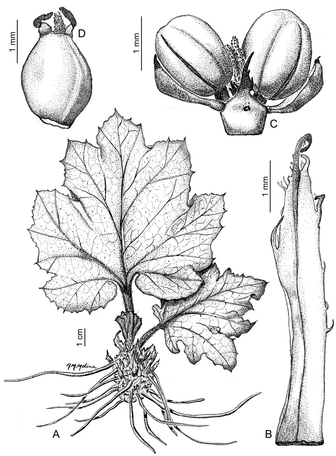 Observación. Lamarck describe a Gunnera chilensis sobre la base de un racimo fructífero coleccionado por J. Dombey en Chile. Por otro lado, este autor, transcribe una parte de la descripción de Feuillée y cita la lámina de esta obra, pero aclara que la especie no es la que describió Molina como Panke tinctoria.
