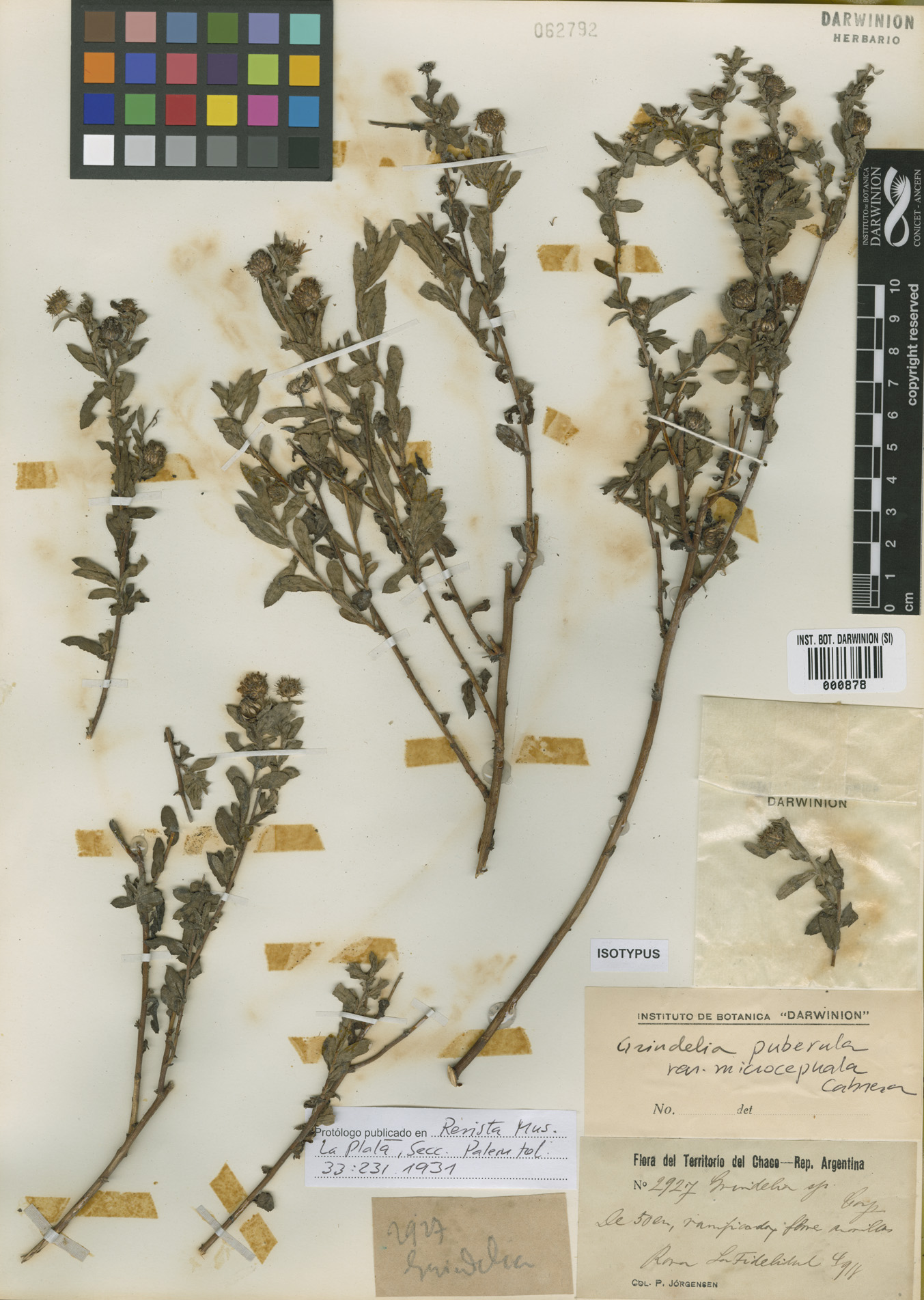 Tipo de Grindelia puberula Hook. & Arn. var. microcephala Cabrera