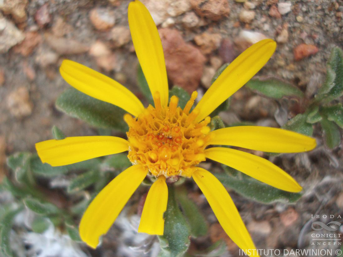 Subarbustos en cojín, rizomatosos, de 3-15 cm de alto. Tallos cortos, hojosos, tendidos o ascendentes, glabros a lanuginosos, glandulosos. Hojas largamente pecioladas, espatuladas, de 11- 40 × 3-6 mm, margen crenado, lobulado o pinnatilobado, ápice obtuso, glabras a lanuginosas, con tricomas simples y tricomas glandulares sésiles, semihundidos en ambas epidermis. Capítulos discoides o radiados, sésiles a subsésiles, de 1,5-3,7 cm de diámetro. Involucro de 6-15 mm de alto, con 6-9 series de filarios desiguales, los externos triangulares, de 2,5-5 × 1-2 mm, subulados, con tricomas glandulares en toda su superficie y a veces con tricomas simples; los internos elípticos a obovados, de 7-9 × 1,5-3 mm, subulados, con el ápice agudo, con tricomas glandulares sésiles en la porción distal, a veces con tricomas simples. Flores dimorfas o isomorfas, las marginales, cuando presentes, con corolas liguladas, limbo elíptico, entero a 3- dentado, de 10-19 × 1,5-3,5 mm; las del centro con corola tubulosa de 6-8 mm de largo. Aquenios prismáticos, de 2,5-4 mm de largo. Papus compuesto por 35-80 aristas capilares desiguales, de 0,5- 9 mm de largo.