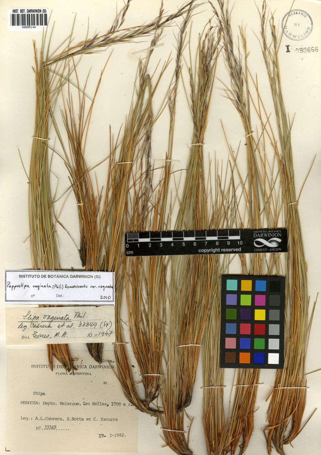 Pappostipa vaginata (Phil.) Romasch. var. argyroidea (F.A. Roig) Romasch. var. argyroidea (F.A. Roig) Romasch. J. Bot. Res. Inst. Texas 2(1): 183. 2008