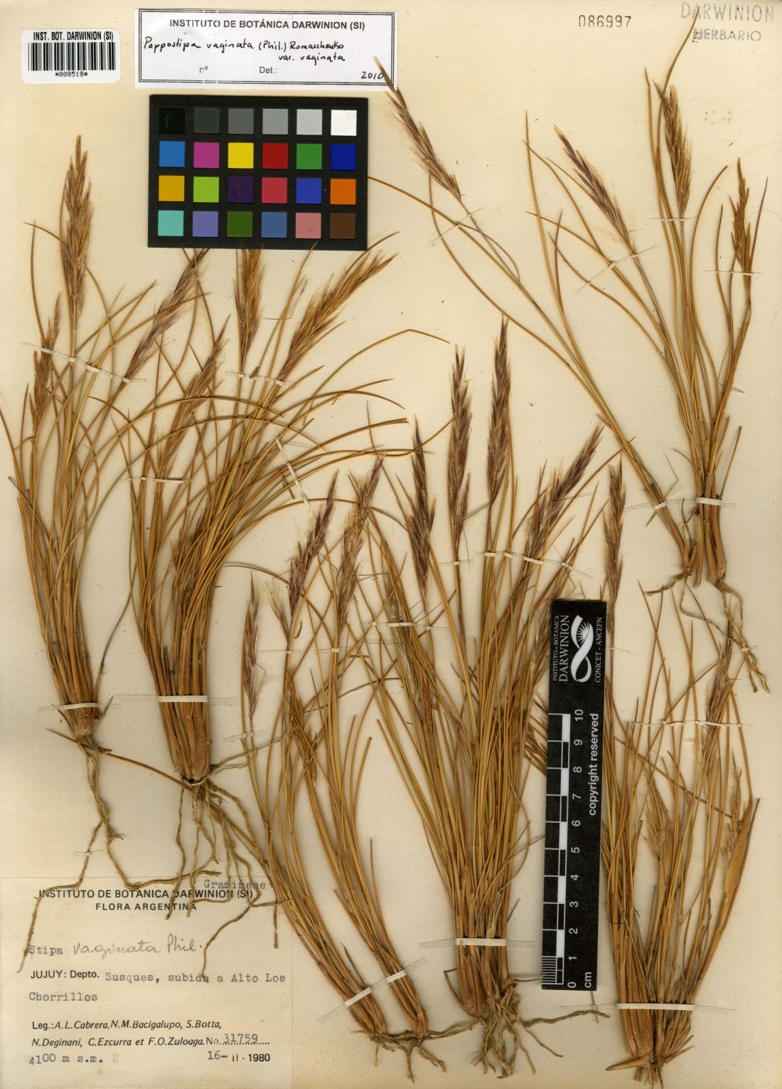 Pappostipa vaginata (Phil.) Romasch. var. argyroidea (F.A. Roig) Romasch. var. argyroidea (F.A. Roig) Romasch. J. Bot. Res. Inst. Texas 2(1): 183. 2008