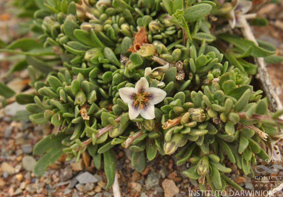 Se distingue de la variedad tipo y de las demás variedades por los caracteres indicados en la clave. Tallos pubescentes cuando joven, luego glabros, con ramas poco rígidas o flexibles. Hojas sésiles; láminas linear-obovadas u obovadas, de 1-10 × 1- 2 mm, pubescentes con pelos ramificados y simples, y algunos glandulares esparcidos. Cáliz pubescente con el mismo tipo de tricomas que las hojas; corola con tubo de 2,5-4 mm, pubescente por fuera.