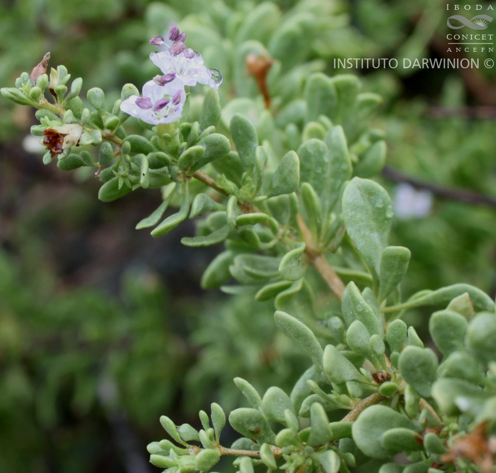 Arbustos de 0,7-2,5 m de alto; tallos castaño-oscuros o grisáceos, pubescentes cuando jóvenes, luego glabros, con braquiblastos marcados, ramificados, con ramas espiniformes por lo general perpendiculares a la rama que las soporta. Hojas planas; láminas filiformes, linear-obovadas o lineares, de 2,5- 30(-40) × 0,5-3(-5) mm, atenuadas en la base, generalmente obtusas en el ápice, membranáceas, glabras, glabrescentes o pubescentes, con tricomas simples y glandulares. Flores 5-meras, raro 6-meras, solitarias, con frecuencia arqueadas; cáliz tubuloso 5-6-dentado, con dientes irregulares, más largos, iguales o más cortos que el tubo, glabro a pubescente con pelos simples y glandulares, tubo de 1,8-3 mm, lóbulos angostamente subtriangulares, de 1-3 mm, agudos o acuminados; corola violácea o lilacina, con la parte interna del tubo más oscura y nervaduras atropurpúreas en los lóbulos y en el tubo, glabra externamente, más raro pubescente, pilosa en su interior formando un anillo en la zona de inserción de los estambres y por debajo de ella, más densamente en los hacecillos estaminales, tubulosa, ensanchándose en forma suave hacia el ápice y un poco contraída por encima del ovario, tubo de 8-10(-12,5) × 2-3 mm, lóbulos subtriangulares de 2-3 × 1,5-2,3 mm; estambres adheridos al tubo corolino a distinto nivel, más arriba de su hemialtura, filamentos desiguales, generalmente 2 más largos que llegan hasta el nacimiento de los lóbulos y son apenas exertos y los 3 restantes más cortos e incluidos, con pelos esparcidos en su base; ovario con nectario verde e inconspicuo, estilo exerto. Baya ovoide, roja, atropurpúrea o anaranjada, de 4-6 × 3-4 mm; semillas reniformes, 8 a 15 por lóculo; episperma con celdillas de paredes onduladas, muy marcadas. Lycium