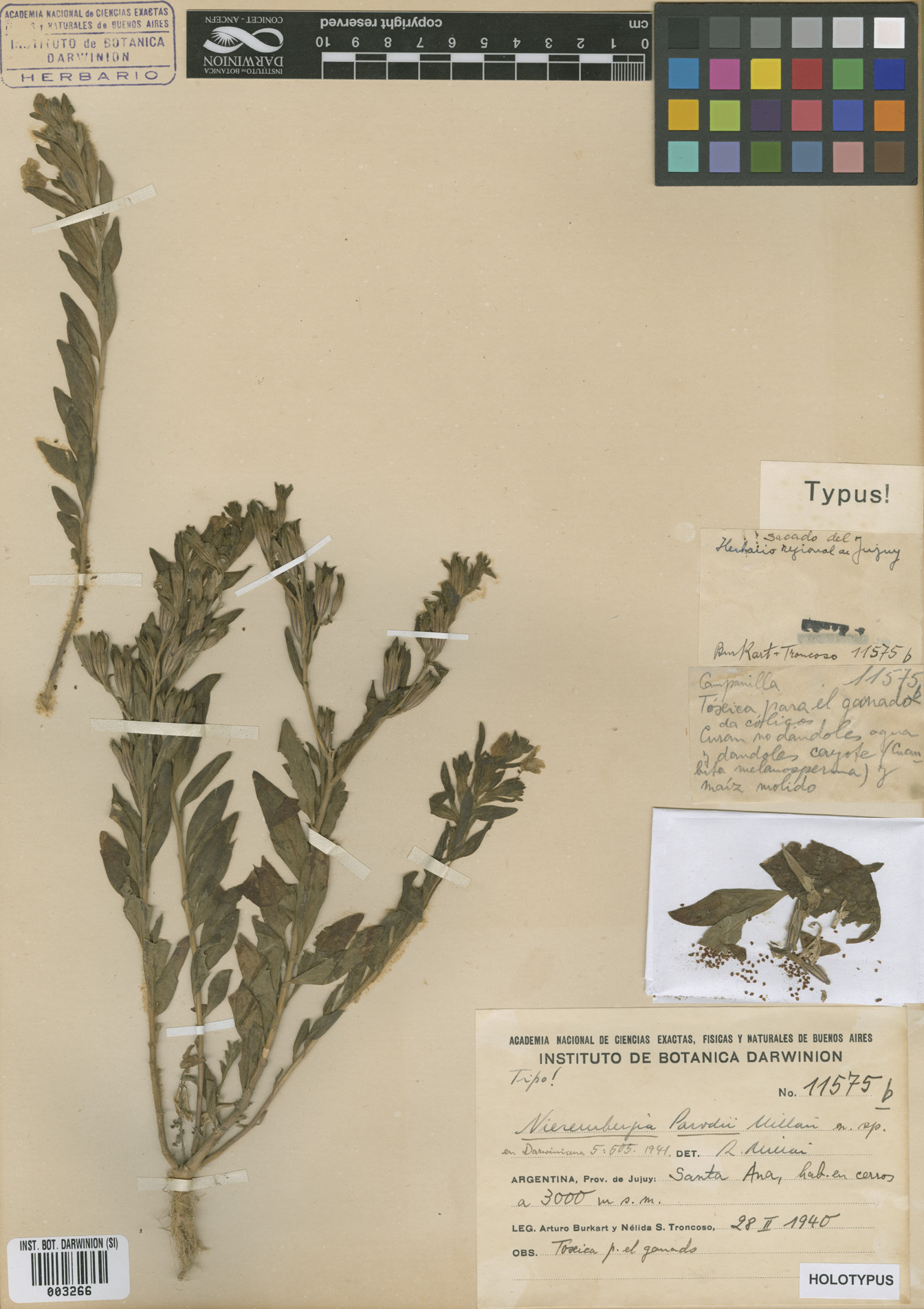 P. G. Lorentz 407 (lectotipo, GOET 009270!, designado por A. A. Coccuci, Flora Argentina 13: 117. 2013; isolectotipo, CORD!).