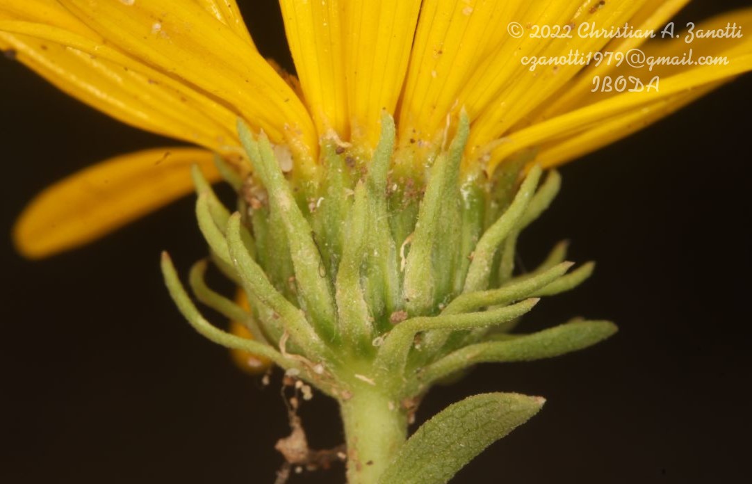 Subarbustos ca. 15 cm de alto. Tallos postrados o semierectos, glabros o pubescentes. Hojas sésiles, polimorfas, por lo común irregularmente lobuladas, también dentadas y pinnatisectas, de 15-20 × 2-12 mm, de ápice agudo, con tricomas simples y/o glandulares estipitados, escasos a numerosos, en ambas caras de la lámina y con tricomas cortos, rígidos, curvos, en los márgenes. Capítulos radiados, de 20-30 mm de diámetro. Involucro de 6-7 mm de alto, con 7 series de filarios subiguales, los externos lineares con la base ensanchada, de 4-6,5 × 0,3-0,5 mm, acuminados, a veces con tricomas simples y tricomas glandulares estipitados en la porción proximal o en toda su superficie; los internos elípticos, de 5-7 × 1,5 mm, acuminados, con tricomas glandulares estipitados en toda su superficie. Flores dimorfas, las marginales con corola ligulada, limbo elíptico, ápice entero, de 12-15 × 2,3-3,5 mm; las del centro con corola tubulosa de 4-5 mm de largo. Aquenios prismáticos de 2,5-3 mm de largo. Papus formado por ca. 4 aristas subcapilares con un borde plano, escasamente ciliadas, de 3,5 mm de largo.