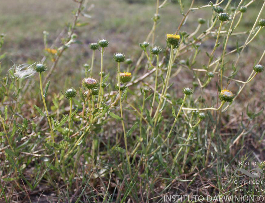 Se diferencia de la variedad tipo por la ausencia de flores liguladas.