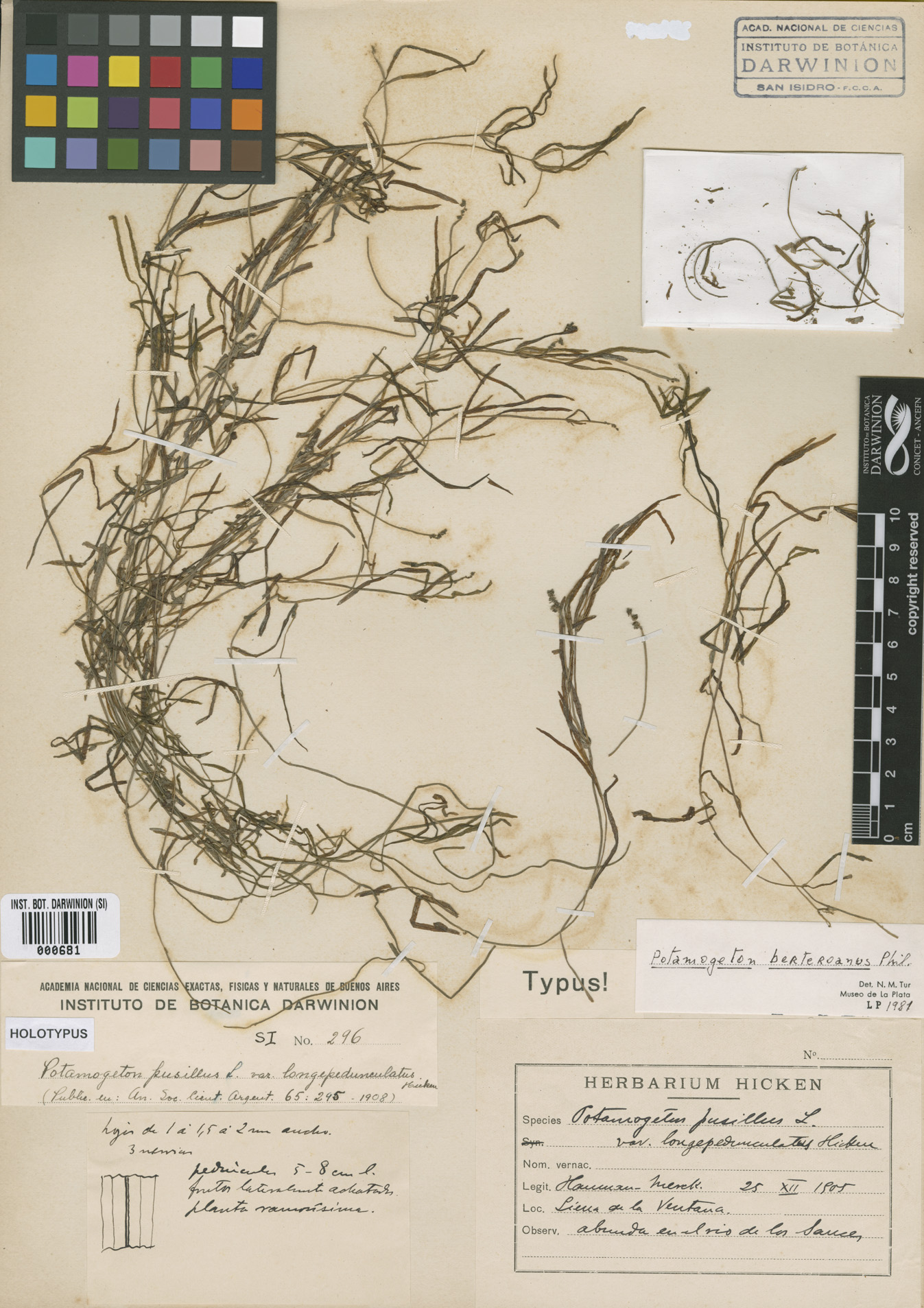 Tipo de Potamogeton pusillus L. var. longepedunculatus Hicken