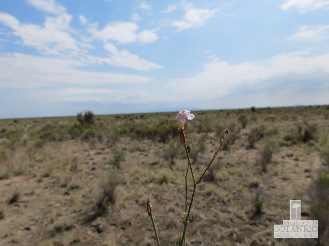 Endémica del centro-oeste de la Argentina, entre los 300 y 1200 m s.m.; por el oeste se la encuentra hasta los 62º y por el este hasta la región chaqueña en la provincia de Santa Fe. Habita suelos bajos y salinos. Por su sistema radical, aprovecha terrenos con disturbio, como los bordes de caminos.