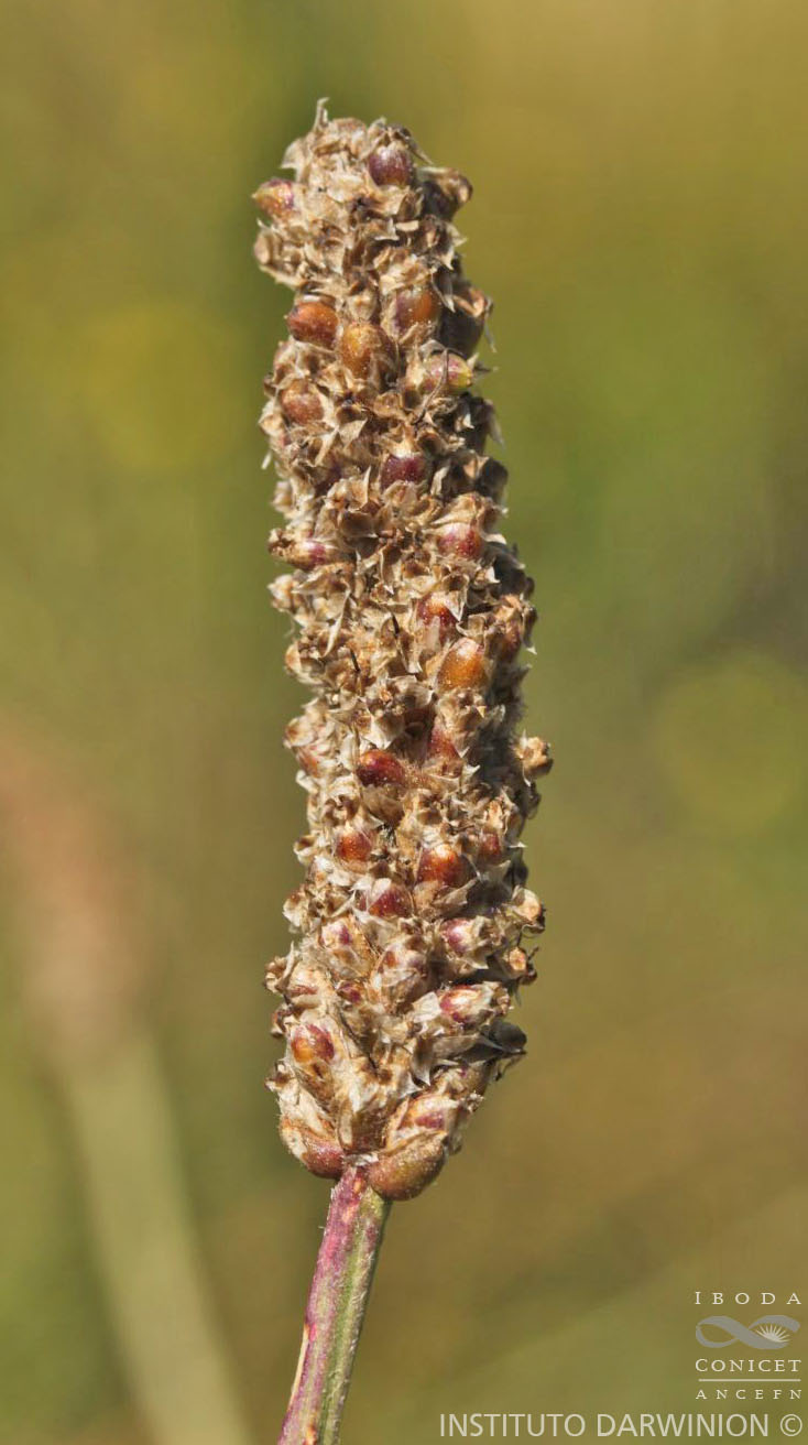 Hierbas perennes, de 0,13-0,60 m de alto; raíz primaria corta y con numerosas raíces secundarias, fasciculadas. Hojas arrosetadas, alternas; láminas lanceoladas, de 10,5-13 × 1-2 cm, glabrescentes en ambas caras, ápice agudo, base atenuada formando un pseudopecíolo de 1-2,5 cm de largo, margen entero o con dientes inconspicuos, venación paralelinervada con 5 nervios. Espigas multifloras, cónicas u ovoides cuando jóvenes, cilíndricas y congestas a la madurez, de 2,5-4 cm de largo; escapos erectos o ascendentes, de 11-45 cm de largo, canaliculados. Flores en la axila de una bráctea deltoidea, de 2,3-5 mm de largo, ápice agudo o bien obovadas; cáliz con sépalos anteriores connados hasta la mitad de su longitud, elípticos, de 2,4-3,2 mm de largo, los posteriores libres con carena velluda; corola con el tubo glabro, lóbulos cuspidados, ovados; estambres 4, exertos; ovario bilocular, de 1,2-1,4 mm de largo. Pixidio elipsoide, de 3-4,7 mm de largo, 2-seminado. Semillas de 1,5-2,5 mm de largo, testa lustrosa, lado placentar convexo.