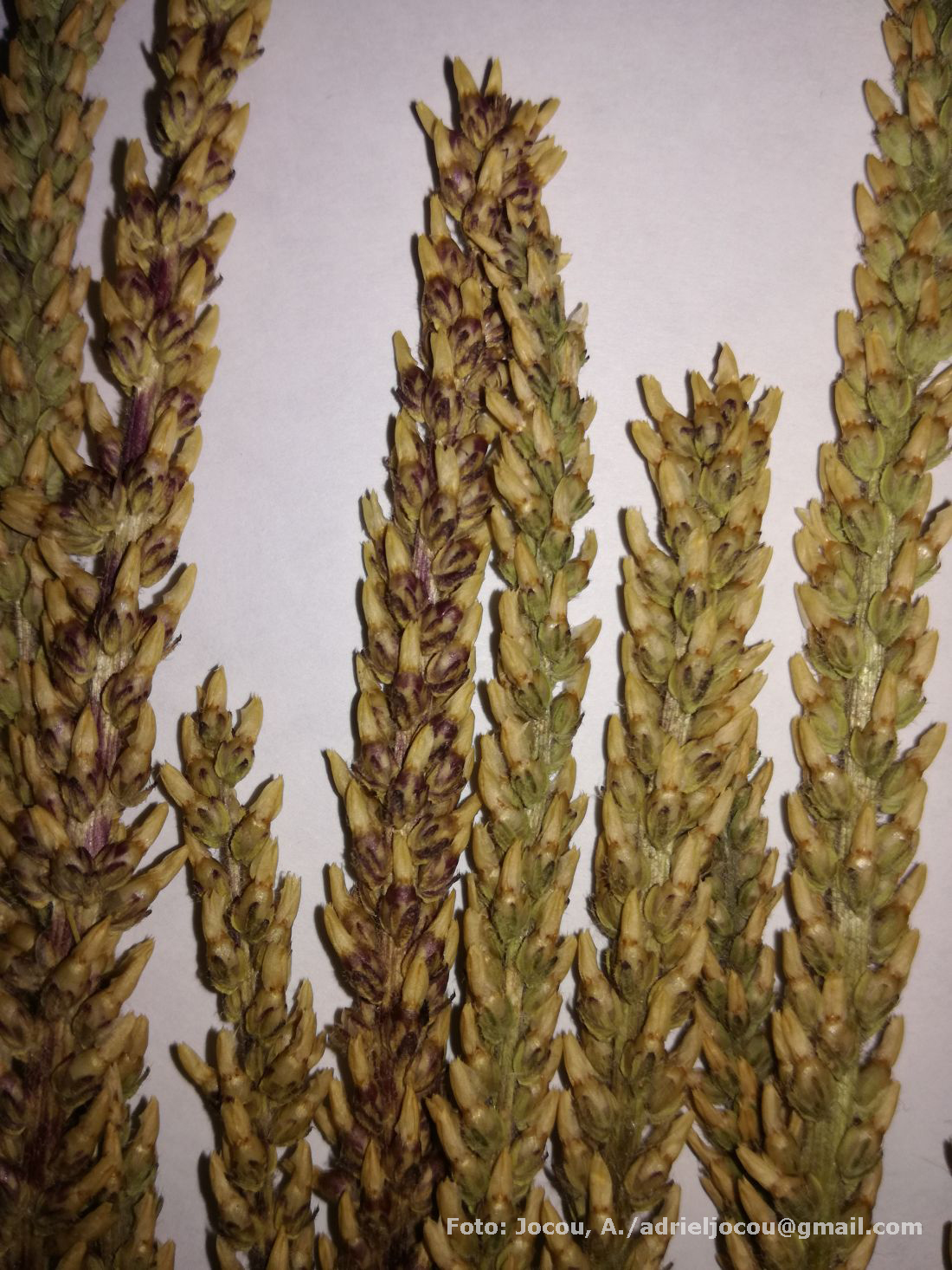 Hierbas anuales, hasta de 0,45 m de alto; raíz primaria fusiforme, engrosada; cáudex inconspicuo. Hojas arrosetadas, alternas, pseudopecioladas; láminas elípticas a lanceoladas, de 3-25 × 0,3-7 cm, hirsutas o bien glabrescentes en ambas caras, ápice agudo, base atenuada, margen entero o ligeramente dentado. Espigas cilíndricas, multifloras, densas, de 1-20 cm de largo; escapos erectos o ascendentes, de 1-28 cm de largo, densamente pubescentes con tricomas largos, patentes, articulados. Flores en la axila de una bráctea triangular, de 1,2-3 mm de largo, ciliada en el margen y pubescente en la cara adaxial; cáliz con sépalos connados sólo en la base, los anteriores elípticos, de 1,5-2,7 mm de largo; corola con el tubo glabro, lóbulos generalemte erectos, los anteriores de 1,6-3,6 mm de largo, superando la longitud de los posteriores; estambres 4, exertos; ovario con 3 óvulos. Pixidios elipsoides, 3-seminados, de 2,5-3,2 mm de largo. Semillas elipsoides, de 1,5-2 mm de largo, testa punteada, olivácea.