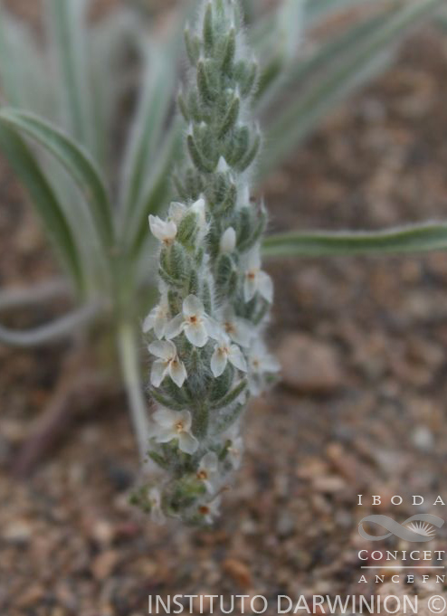 Hierbas anuales, erectas, hasta de 0,45 m de alto; raíz primaria fusiforme, engrosada, poco ramificada. Hojas arrosetadas, alternas; láminas lineares, 0,6-21 × 0,05-0,7 cm, densamente pilosas o velludas, en ocasiones glabrescentes, ápice obtuso, base foliar truncada, margen entero u ocasionalmente con dientes inconspicuos. Espigas cilíndricas, multifloras, de 0,5-9,5 cm de largo, flores dispuestas en verticilos trímeros; escapos erectos, de 1,3-22 cm de largo, con tricomas antrorsos, de longitud variable, en la porcion distal, patentes hacia la base. Flores en la axila de una bráctea de 2,2-5,5 mm de largo, triangular, sobrepasando la longitud de los sépalos; cáliz con sépalos connados sólo en la base, los anteriores obovados, de 2,2-4,8 mm de largo, los posteriores más anchos y con nervios más delgados; corola con el tubo glabro, lóbulos anchamente ovados, cordados, los tres anteriores de 1,8-2,1 mm de largo, el posterior doblado desde un punto 0,2 mm más alto que los anteriores; estambres 4, ligeramente exertos; óvulos 2. Pixidios ovado- elipsoides, 2-seminados, de 3,8-4,6 mm de largo. Semillas elipsoides, de 2,2-2,6 mm de largo, con el lado placental excavado, testa opaca.