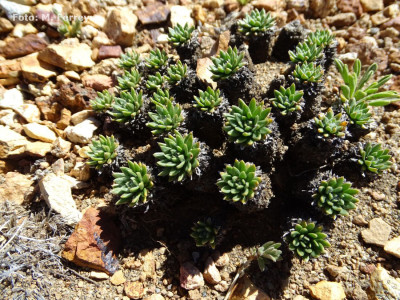 Hierbas perennes, formando cojines compactos hasta de 5 cm de alto; raíz primaria larga, gruesa y poco ramificada; tallo de 5-50 mm de largo, generalmente ramificado. Hojas arrosetadas, alternas, imbricadas; láminas oblongas, de 3-18 × 1-3,4 mm, pubescencia tenue o bien glabras, ápice acuminado, base subvaginante, margen entero. Flores solitarias, sobre un escapo erecto de 1-12 mm largo, glabrescente; brácteas florales 2, opuestas, ovadas, de 1,8-3-8 mm de largo, ápice acuminado y transparente; cáliz con sépalos connados sólo en la base, elípticos, de 2-3,6 mm de largo, acumen transparente; corola con el tubo glabro, lóbulos de 0,8-1,8 mm de largo; estambres 4, exertos; ovario 3-5 ovulado. Pixidio 1-4-seminado, con la porción basal alargada hasta 2 mm durante la maduración. Semillas elipsoides, de 1,8-2 mm de largo, testa opaca.