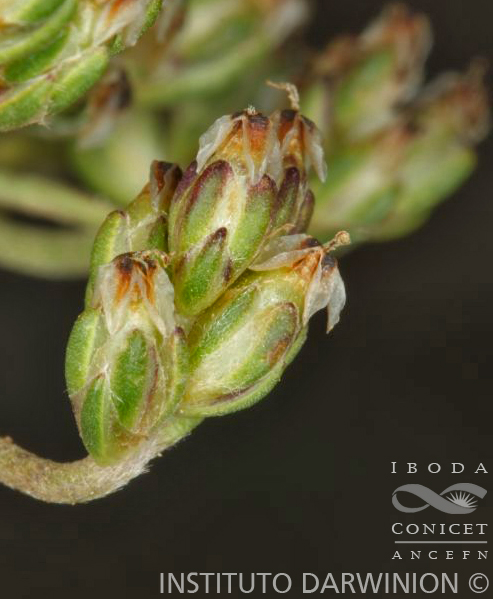 Hierbas anuales, bienales o hasta de 3 años, hasta de 0,15 m de alto; raíz primaria profunda, fusiforme, engrosada, hasta de 15 cm de largo con raíces secundarias filiformes; cáudex corto, grueso, de 5-15 mm de largo. Hojas arrosetadas, alternas; láminas lineares, de 1,5-10 × 0,05-0,1 cm, ápice agudo, base subvaginante, margen entero, densamente seríceo-pubescentes, raramente glabras. Espigas ovoides o globosas, multifloras o bien paucifloras, de 5-15 mm de largo; escapos ascendentes, de 1,4- 14,5 cm de largo, densamente seríceo-pubescentes. Flores en la axila de una bráctea triangular-ovada, de 2-3 mm de largo; cáliz con sépalos connados sólo en la base, lóbulos de 2,6-3,2 mm de largo; corola con el tubo glabro, lóbulos de 1,3-3,3 mm de largo. Pixidio 1-seminado, elipsoide, de 4,5-5,2 mm de largo. Semillas elipsoides, de 1,9-2,7 mm de largo.