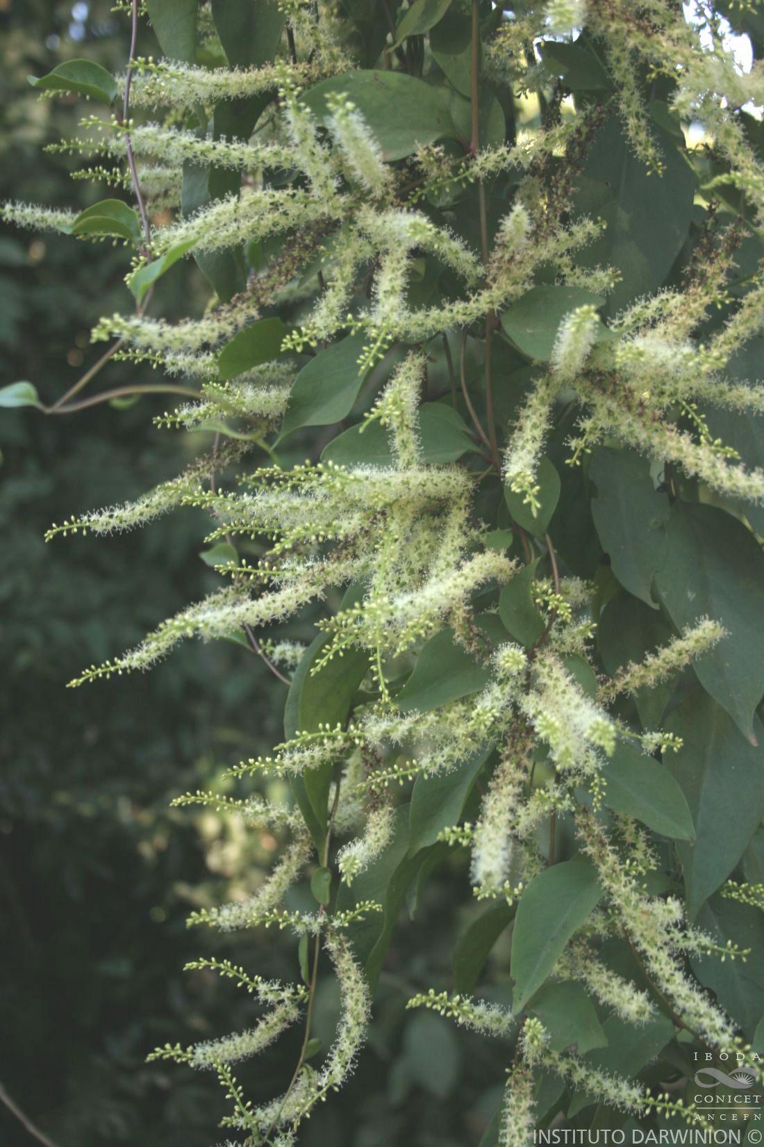 Enredadera perenne, hasta de 6 m de largo, con raíces tuberosas y con pequeños tubérculos aéreos o bulbillos en las axilas foliares. Hojas anchamente ovadas, de 2,5-5 × 2-8 cm, de base cordada o a veces truncada a redondeada, de ápice agudo u obtuso; pecíolo de 2-7 mm de largo. Inflorescencia en racimos espiciformes axilares de 20 cm de largo, laxos, generalmente muy ramificados, bractéolas de 2-5 mm de largo. Flores con pedicelos ca. 1 mm de largo, con 2 brácteas persistentes, triangulares a anchamente ovadas, connadas, cupuliformes; sépalos de 1,5-2,9 × 1,3-2,4 mm, ovados, oblongos a elípticos, petaloideos, blancos en la antesis y castaño oscuros en el fruto; pétalos de 2-3,5 × 1,5-2,5 mm, subiguales, subcóncavos, elípticos a oblongos, blancos en la antesis y castaño oscuros en el fruto; estambres reflexos en el ápice, soldados en la base, filamentos estaminales de 2-3,6 mm de largo, anteras de 0,6-1,2 mm de largo; ovario de 0,4-0,7 mm de diámetro, ovoide a globoso, incluido dentro de la cúpula formada por la base de los pétalos, estilo 3-fido o soldados en la base y 3 estigmas globosos o claviformes.