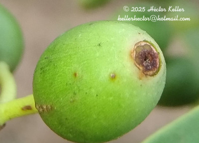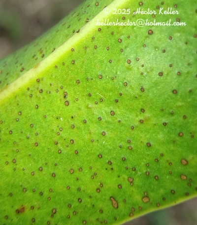 Obs. III.- Especie parasitada por Aecidium phrygilanthi Jachson & Holway, The Rusts of South America, en Mycologia 19: 53. 1927.
