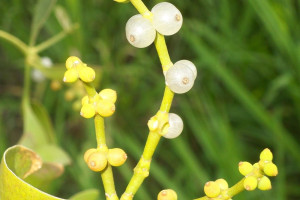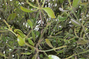 Hierbas diclino-monoicas, glabras; ramificación dicotómica, raramente percurrente, dicotomías formadas por el aborto del meristema apical o por la formación de la inflorescencia; ramas erectas, castaño-rojizas, verde oscuras a amarillentas, cuando secas negras, verde claras o amarillentas; sistema endofítico con pocas ramas que emergen del sistema haustorial. Tallos circulares en sección transversal, de 3-8 × ca. 0,5 cm, los basales circulares, alcanzando ca. 3 cm de diámetro; catáfilos ca. 4 mm de largo, presentes en todos los entrenudos, 2-3 pares en las ramas laterales proximales, un par ubicado ca. 5 mm desde la base, eventualmente un segundo par ca. 1-2 cm por encima, en las ramas principales con un par ca. 1 cm desde la base. Hojas con pecíolo ca. 3 mm de largo; láminas obovadas, raramente elípticas, de 2,5-3,5 × 1,2-2 cm, base aguda o decurrente, ápice agudo, convexo, margen crenado, carnosas. Inflorescencias en espigas laterales y terminales, de 2-6 cm de largo, con 1 par de brácteas estériles en la base; segmentos fértiles 3-5, 2-seriados, con 3 flores por cada bráctea fértil, 1 estaminada apical y dos pistiladas por debajo, en la porción distal del segmento fértil; foveolas poco profundas. Frutos globosos, rosados o anaranjados cuando inmaduros, blancos a la madurez, ca. 6 mm de diámetro, superficie lisa, pétalos abiertos y erectos. Semillas ca. 5 × 3 mm.
