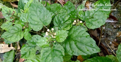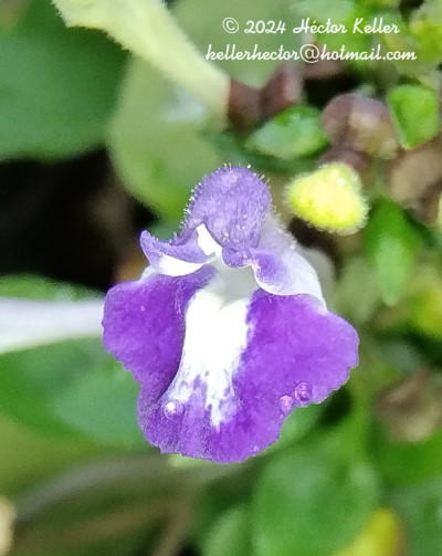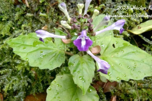 Hierbas perennes, de 20-50 cm de alto; tallos erguidos, pubérulos. Hojas con pecíolo de 0,5-5 cm de largo; láminas ovadas, de 1,5-8 × 1-4 cm, ápice agudo y base truncada a subcordada, margen irregularmente dentado, ciliado, cara adaxial glabra o algo estrigosa, cara abaxial con pelos breves sobre la nervadura. Flores verticiladas, dispuestas en pseudoracimos bracteosos, densos, terminales, de 5-10 cm de largo; pedicelos de 2-3 mm de largo; bractéolas presentes o no. Brácteas ovadas, ciliadas en el margen, ca. 5 mm de largo. Cáliz de 2,5-3 mm de largo, hirsuto. Corola con el tubo blanco y los labios azules, de 10-14 mm de largo, con pubescencia glandular densa o escasa, tubo de 8-10 mm de largo, labio superior entero, el inferior 3-lobado, con lóbulos laterales soldados al superior. Estambres subglabros. Ginóforo sin apéndices. Clusas globosas, oscuras, tuberculadas.