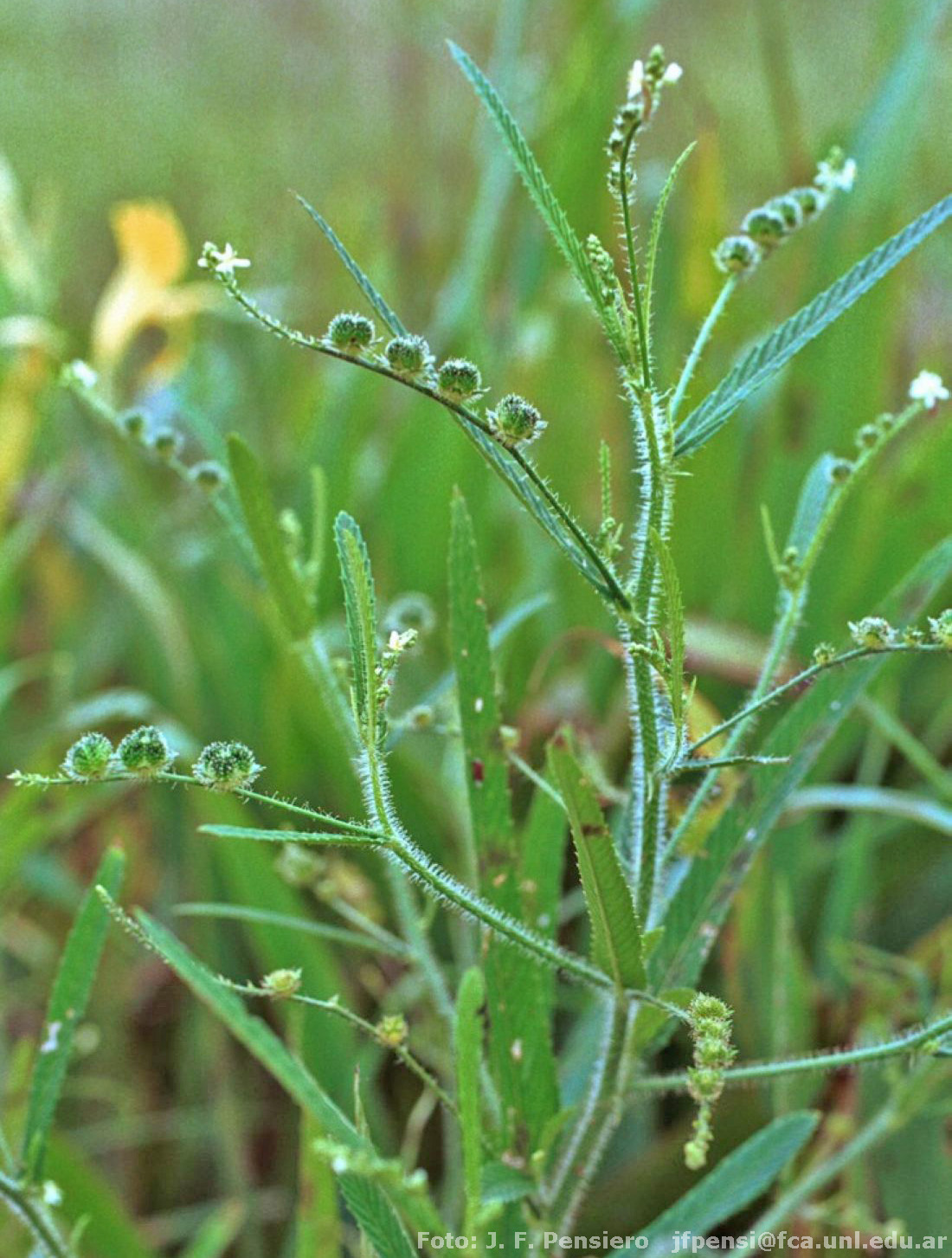 Hierba o arbusto de 50-100 cm de alto, anual, monoica/o; tallo no fistuloso, macizo, levemente estriado, con abundantes tricomas glandulares y simples, los ejes secundarios mucho más largos que las hojas del eje primario correspondiente, entrenudos de 2-11,5 cm de largo, sin acúleos; estípulas lanceoladas, de 0,2-0,3 × 0,08-0,1 cm, pubescentes. Hojas con pecíolos de 0,2-4,5 cm de largo; láminas lanceoladas, de 1,5-14 × 0,3-4,5 cm, de base redondeada, ápice agudo, bordes con 7-26 dientes, venación pinnada, con 8-22 venas secundarias, cubiertas por tricomas simples y glandulares sobre todo en la nervadura media de la cara abaxial, nervaduras secundarias paralelas. Inflorescencias racemosas, andróginas, de 2-9,5 cm de largo, con pubescencia simple y glandular, brácteas ovadas, de 1-1,5 mm de largo, cóncavas, pubescentes. Flores estaminadas 6-13, sobre pedicelos ca. 1,5 mm de largo, articulados; sépalos 5, lanceolados, de 1,5-1,7 × 0,7-0,8 mm, iguales, glabros; pétalos 5, espatulados a obovados, de 1,4-1,6 × 0,5-0,6 mm, iguales, enteros, glabros; estambres 8, filamentos unidos en una columna ca.1 mm de largo, ápice de la columna 3-lobado. Flores pistiladas 1-5, sobre pedicelos de 1-1,5 mm de largo; sépalos 6, lanceolados, de 2-4 × 1-1,8 mm, desiguales, la base soldada, glabros o con tricomas simples en la cara abaxial, el margen entero, raro ciliado; pétalos 5, elípticos a obovados, de 2,4-4 × 1-2 mm, iguales, glabros; ovario muricado, cubierto por tricomas simples y glandulares; estilo ca. 1,1 mm de largo, 10-12-lobado. Fruto una cápsula de 6-7 mm de diámetro, pubescente. Semillas ovoides, de 2,1-2,3 mm de diámetro, no apiculadas, foveoladas, castañas a negruzcas.