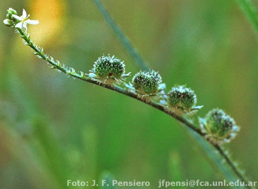 Hierba o arbusto de 50-100 cm de alto, anual, monoica/o; tallo no fistuloso, macizo, levemente estriado, con abundantes tricomas glandulares y simples, los ejes secundarios mucho más largos que las hojas del eje primario correspondiente, entrenudos de 2-11,5 cm de largo, sin acúleos; estípulas lanceoladas, de 0,2-0,3 × 0,08-0,1 cm, pubescentes. Hojas con pecíolos de 0,2-4,5 cm de largo; láminas lanceoladas, de 1,5-14 × 0,3-4,5 cm, de base redondeada, ápice agudo, bordes con 7-26 dientes, venación pinnada, con 8-22 venas secundarias, cubiertas por tricomas simples y glandulares sobre todo en la nervadura media de la cara abaxial, nervaduras secundarias paralelas. Inflorescencias racemosas, andróginas, de 2-9,5 cm de largo, con pubescencia simple y glandular, brácteas ovadas, de 1-1,5 mm de largo, cóncavas, pubescentes. Flores estaminadas 6-13, sobre pedicelos ca. 1,5 mm de largo, articulados; sépalos 5, lanceolados, de 1,5-1,7 × 0,7-0,8 mm, iguales, glabros; pétalos 5, espatulados a obovados, de 1,4-1,6 × 0,5-0,6 mm, iguales, enteros, glabros; estambres 8, filamentos unidos en una columna ca.1 mm de largo, ápice de la columna 3-lobado. Flores pistiladas 1-5, sobre pedicelos de 1-1,5 mm de largo; sépalos 6, lanceolados, de 2-4 × 1-1,8 mm, desiguales, la base soldada, glabros o con tricomas simples en la cara abaxial, el margen entero, raro ciliado; pétalos 5, elípticos a obovados, de 2,4-4 × 1-2 mm, iguales, glabros; ovario muricado, cubierto por tricomas simples y glandulares; estilo ca. 1,1 mm de largo, 10-12-lobado. Fruto una cápsula de 6-7 mm de diámetro, pubescente. Semillas ovoides, de 2,1-2,3 mm de diámetro, no apiculadas, foveoladas, castañas a negruzcas.