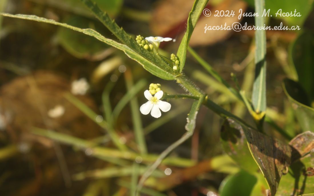Hierba perenne monoica, 40-60 cm alt., tallo ramoso, fistuloso, con tricomas glandulosos, la mayoría rígidos, transformados en acúleos tenues y pelos simples erguidos, ambos más densos hacia el ápice de las ramas. Hojas 7-9,2 cm long. x 1,4-2,8 cm lat., subsésiles, angostamente ovales, de base sub cordada, y ápice largamente atenuado, de borde irregularmente serrado, con 9-13 nervios curvos, con tricomas simples y glandulares en ambas caras, pero solo en la cara abaxial algunos tricomas glandulares como acúleos tenues, con preferencia sobre los nervios; pecíolo 1-7 mm long., estípulas 2-3 mm long., triangular ovales con tricomas de ambos tipos. Inflorescencias andróginas, de raquis con ambos tipos de tricomas; brácteas 1,5-2,5 mm long. Flor pistilada: 1-3 por inflorescencia, subsésiles, cáliz de 5 sépalos desiguales, 2,5-3 mm long, con tri comas glandulares y simples en ambas caras, los primeros más numerosos sobre la cara externa y borde de los sépalos; corola de 5 pétalos iguales, 2,5-4 mm long., elípticos, de ápice agudo, glabros; ovario con densa pubescencia de tricomas glandulares y simples, estilo trilobado, con 5-7 divisiones por lóbulo. Flor estaminada: cáliz gamosépalo, 5-10bado, lóbulos 2,2-2,5 mm long., agudos, apiculados, con tricomas simples, raro alguno glandular; pétalos 5, 2,5-3,5 mm long., obovados, de base cuneada y ápice suavemente emarginado, ápice del andróforo entero o 2-10bado. Fruto con tricomas glandulares de base algo ensanchada, sobre todo los del ápice de los carpelos, y tricomas simples abundantes. Semilla globosa,3 mm diám., suavemente foveolada