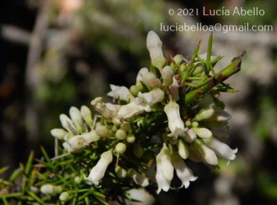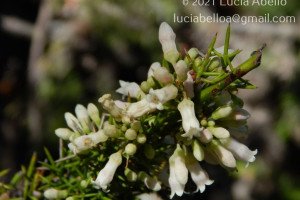 Arbustos rastreros o achaparrados hasta erectos, de 0,40-3,5 m de alto; ejes y espinas teretes o apenas comprimidas pubescentes o glabras. Espinas o ramas espiniformes teretes o ligeramente comprimidas: las de primer orden, de 1,4-6,2(-10) cm de largo; las de tercer orden poco frecuentes. Hojas con lámina elíptica o anchamente elíptica, hasta de 9 mm de largo. Flores blancas; tubo floral urceolado, de 3-5,5 mm de largo; sépalos de 1,8-3,3 mm de largo; estambres notablemente exertos, fijos en la garganta del tubo entre los dientes calicinos, filamentos de 0,8-1,9 mm de largo, anteras de 0,5-0,8 mm de largo; disco nectarífero con el borde libre de 0,3-0,5 mm de ancho; ovario ca. 0,7 mm de largo, estilo de 4-5,5 mm de largo, frecuentemente muy exerto, indiviso o dividido distalmente en 3 ramas. Frutos de 4-6 mm de diámetro, castaños.