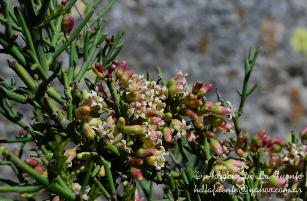 Arbustos de 0,4-4 m de alto; espinas y ramas espiniformes, teretes o ligeramente comprimidas: las de primer orden hasta de 10 cm de largo; las de segundo orden de 2-3,7 cm de largo, y las de tercer orden de 0,5-1,3 cm de largo. Hojas con lámina elíptica u ovada, hasta de 1(-2) cm de largo. Flores blancas, amarillentas, verdosas, rosadas o rojas; tubo floral urceolado, de 5-7 mm de largo; sépalos de 1,5-3 mm de largo; estambres subinclusos que apenas asoman de la garganta del tubo, filamentos de 0,2-0,5 mm de largo, anteras de 0,8-1 mm de largo; disco nectarífero con el borde libre de 0,5-0,9 mm de ancho, muchas veces plegado y no enrollado; ovario ca. 0,9 mm de largo, estilo de 5-5,6 mm de largo, apenas o notablemente exerto. Frutos ca. 5 mm de diámetro, castaños o rojizos.
