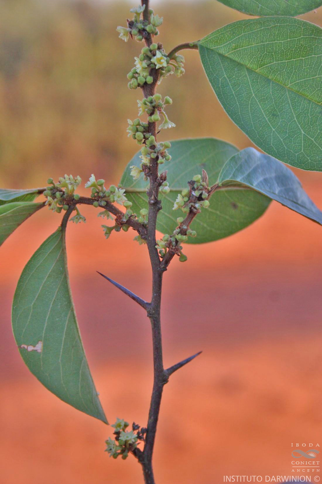 Arbustos o árboles de 1,5-4 m de alto, con espinas de 0,4-1(-4) cm de largo; entrenudos jóvenes pubescentes, los más viejos glabros. Hojas generalmente alternas; pecíolos de 0,4-1 cm de largo, pubescente; lámina de 3-17 × 2,4-4 cm, base cuneada con dos glándulas, ápice acuminado o escotado, el margen entero, algo ondulado; cara adaxial glabra y brillante, la abaxial casi glabra, pubescente sobre los nervios; estípulas de 3-7 mm de largo. Inflorescencia en glomérulos sésiles, de 5-22 flores. Flores con pedicelos de 1-3 mm de largo; tubo floral de 1,5 mm de largo; dientes del cáliz de 1,5 mm de largo, erectos; pétalos de 1,2 mm de largo; estambres con fi lamentos de 1 mm de largo, anteras de 0,5 mm de largo; disco nectarífero de 2 mm de diámetro, glabro; gineceo de 1,3 mm de largo. Fruto de 5-8 mm de diámetro. Semillas de 4-6 mm de diámetro.