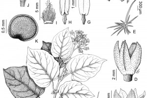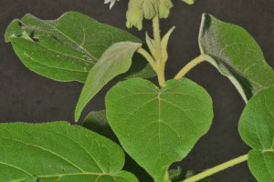 Arbustos o árboles de 1-3 m de alto, muy fétidos, con olor a almizcle; tallos tomentosos con tricomas glandulares y tricomas ramificados, dendríticos, estrellados y equinoides, a veces con un radio central muy largo, subsésiles a estipitados. Hojas solitarias; pecíolos de 4-11 cm; láminas cordadas a ovadas, de 7-27 × 5-12 cm, de base cordada, ápice agudo a acuminado, con igual indumento que los tallos, discoloras; epifilo verde oscuro; hipofilo verde claro; hojas axilares muy desarrolladas, ovadas. Inflorescencia terminal o subterminal, ramificada 2 o más veces, pluriflora, con 25-60 flores; pedúnculos de 8,3-12 cm. Pedicelos de 3-6 mm; cáliz de 7-9,5 mm, partido hasta los 2/3 de su longitucabezuela glandular y tricomas glandulares entre éstos, lóbulos angostamente ovados, de 5-8,3 mm, subobtusos, pubescentes en su cara exterior, glabrescentes en el interior o con algunos tricomas simples y estrellados en los extremos; corola estrellada, de 15-18 mm de diámetro, 8-10,5 mm de largo, apenas excediendo la longitud del cáliz, blanca, blanco-azulada o azul; filamentos de 1,3-2 mm, anteras de 2,7-4,3 mm; ovario tomentoso, estilo de 4-4,4 mm, apenas superando las anteras, glabro o con algunos tricomas estrellados hasta la mitad de su longitud. Baya de 10-12 mm, amarilla, anaranjada, pubescente; semillas castaño claras a amarillentas, de 1,2-1,5 × 1-1,3 mm.d, con tricomas estrellados con un radio pluricelular terminado en