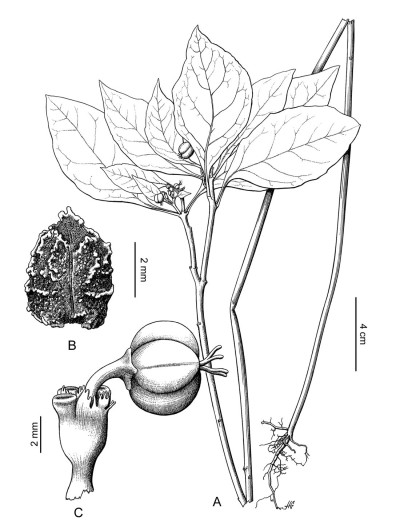 Hierbas anuales, hasta de 50 cm de alto, glabras; tallos erectos con entrenudos hasta de 12 cm de largo. Hojas con pecíolos ca. 3 cm de largo; láminas inferiores panduriformes, las superiores oblongo-lanceoladas, de 30-80 × 25-50 mm, el margen dentado. Ciatios en dicasios simples; involucros cilíndricos, de 3-4 × 2-3 mm, lóbulos rectangulares y partidos, generalmente con un nectario deltoide cóncavo de abertura semilunar y borde ligeramente 2-lobado. Flores estaminadas ca. 35; bractéolas laminares, laciniadas. Flores pistiladas glabras; ovario con estilos 2-fidos hacia la porción distal. Fruto una cápsula globosa, de 4-5 × 4-4,5 mm. Semillas prismáticas, de 2,5-3,5 × 2-2,4 mm, con excrecencias en tres bandas; carúncula ausente.