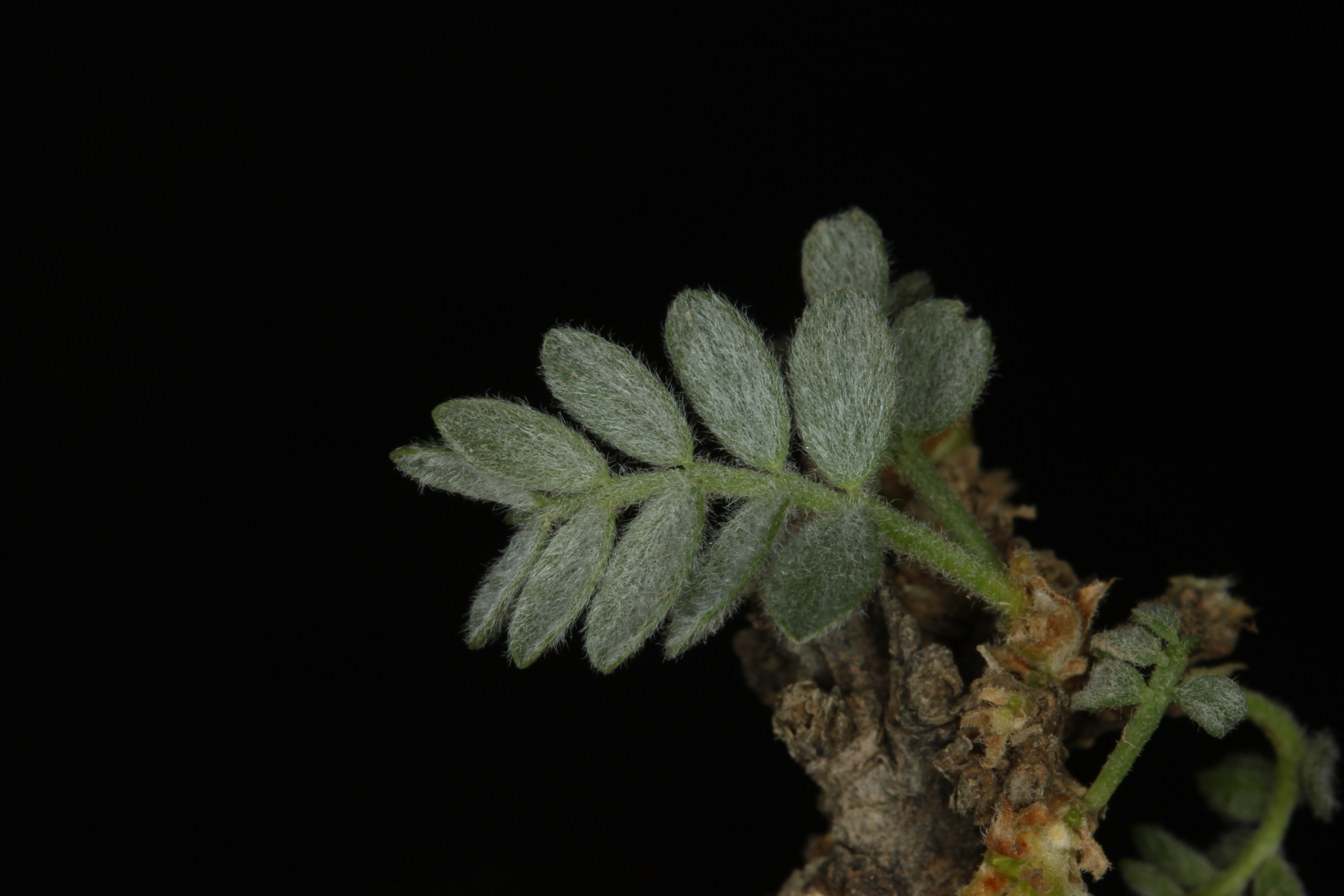 Arbustos bajos, generalmente al ras del suelo, 4-10(-30) cm alt., a menudo formando cojines compactos, hasta 50 cm diám., ramas subterráneas alargadas, rara vez radicantes, comúnmente pubescentes hasta seríceas, eglandulosas; raíz axonomorfa. Espinas estériles 2-4 divididas que superan al follaje. Hojas, 0,8-1,5 cm long., seríceo-pubescentes, fasciculadas sobre braquiblastos en ramas adultas; folíolos 3-7 pares, elíptico-obovados, generalmente conduplicados, 3-7 mm long. x 1-2,5 mm lat., subagudos a obtusos, generalmente pubescentes. Flores, 1-1,2 cm long. en infloresencias umbeliformes paucifloras entre las hojas; brácteas ovadas, pequeñas, persistentes, pedicelos pubescentes, 2-7,5 mm long.; cáliz comúnmente pubescente, 5-7 mm long., lóbulos subiguales, 3-5 mm long., superando algo al tubo, subfoliáceos, ensanchados hasta 1, 9 mm lat., obtusos o mucronados; corola con el estandarte pubescente en el dorso; ovario densamente pubescente, 4-ovulado. Lomento breve, a menudo incluso en el cáliz, 1-3 articulado; artejos semicirculares, 2,5-3 mm diám, pubérulos, reticulados, generalmente con cerdas pilosas de 1-2 mm long.
