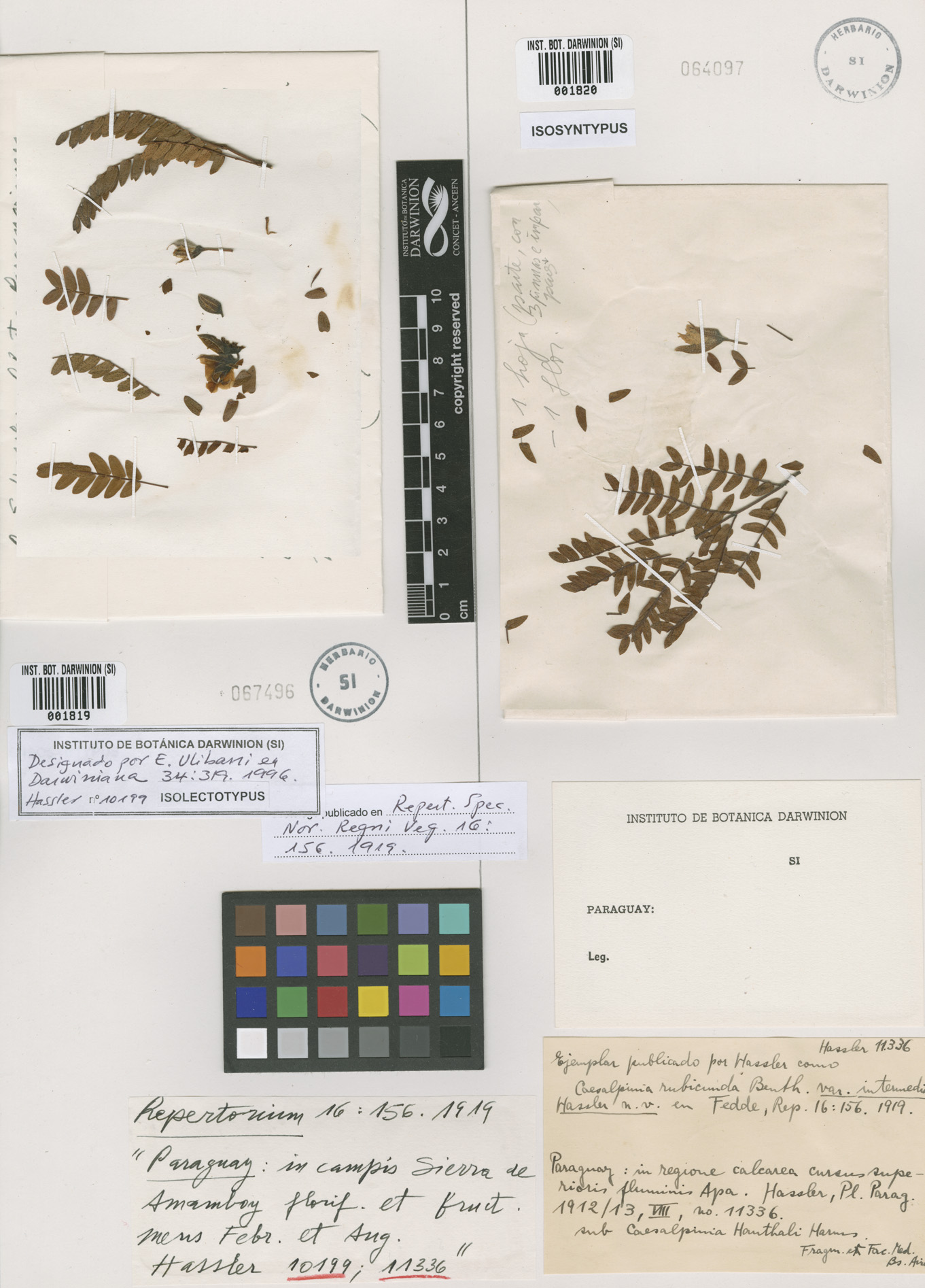 Tipo de Caesalpinia rubicunda (Vogel) Benth. var. intermedia Hassl.