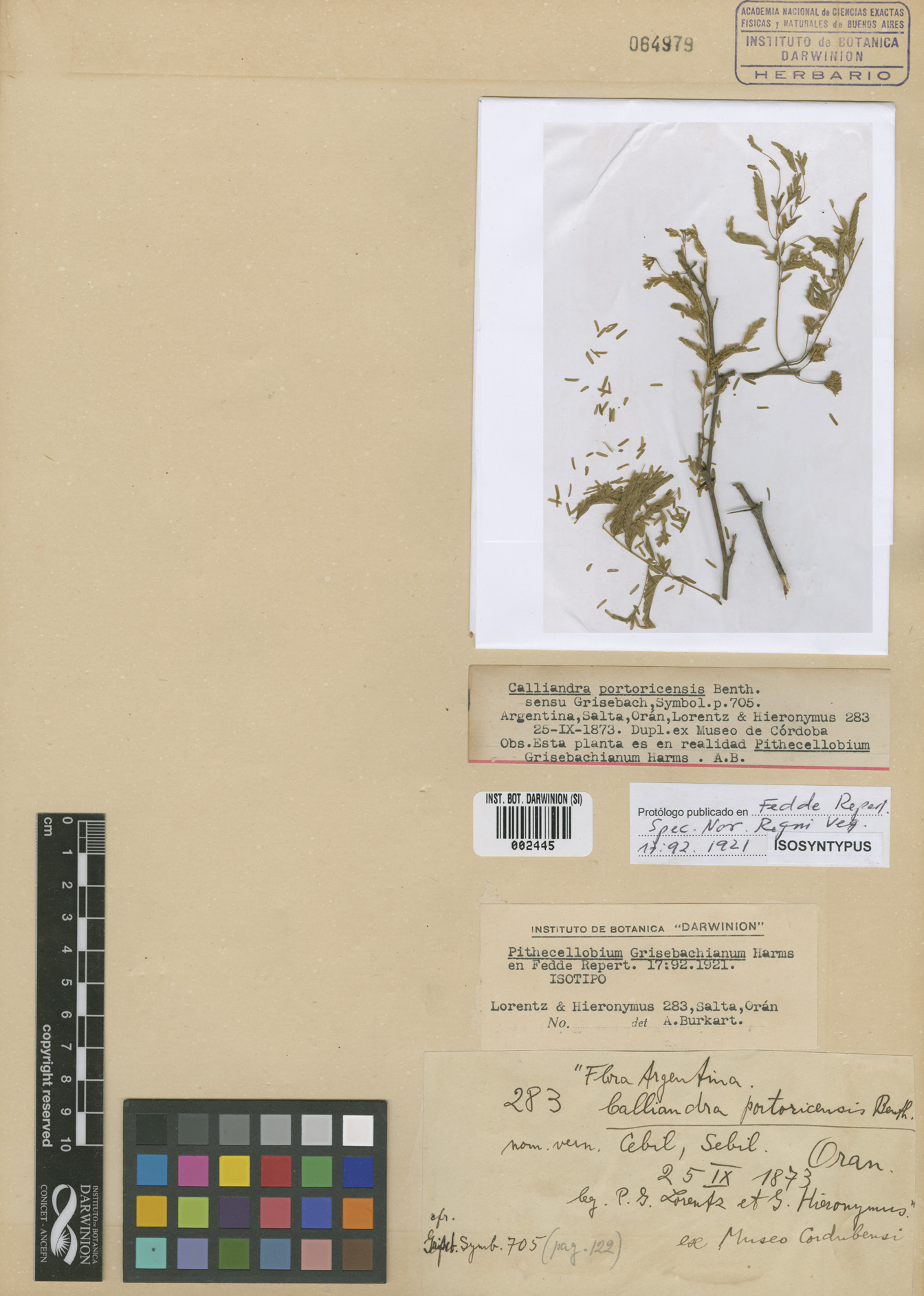 Pithecellobium grisebachianum Harms Repert. Spec. Nov. Regni Veg. 17: 92. 1921
