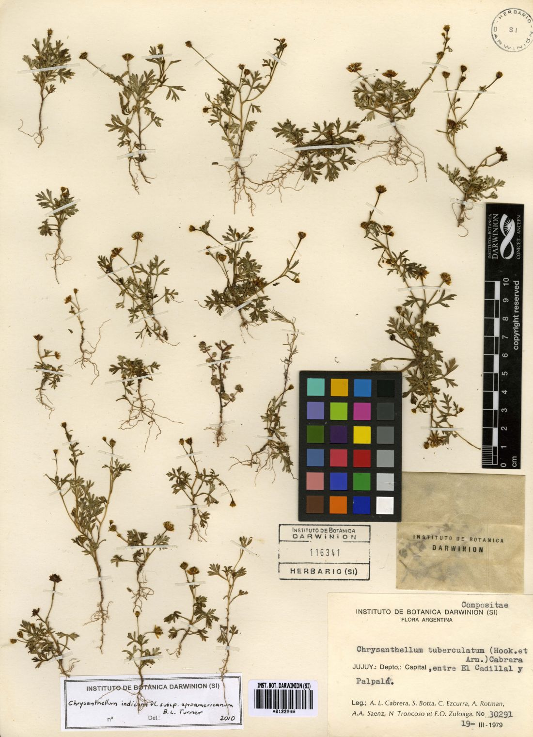 Hierbas anuales, con varios tallos tendidos desde abajo, de 10-40 cm de largo, glabros. Hojas basales arrosetadas, con pecíolos hasta de 8 cm de largo y láminas de contorno ovado, 2- 3-pinnatisectas, con segmentos linear-lanceolados; hojas caulinares alternas, gradualmente menores. Capítulos solitarios en el extremo de las ramitas y axilares. Involucro acampanado, ca. 2,5 × 3,5 mm; filarios 2-seriados, oblongos, glabros. Receptáculo con páleas oblongo-lineares. Flores del margen pistiladas, con lígula oblongo-elíptica, de 1,5-2 mm de largo, entera o 2-dentada; flores del centro numerosas, perfectas, con corola tubulosa, ca. 2 mm de largo, 4-5-lobada. Aquenios dimorfos: los del margen cilíndricos-humeriformes, ca. 3 mm de largo, sin alas, con el cuerpo liso o rugoso, los del disco elípticos, ca. 3,5 × 2 mm, comprimidos, lisos o algo rugosos; cuando isomorfos todos anchamente alados y comprimidos.