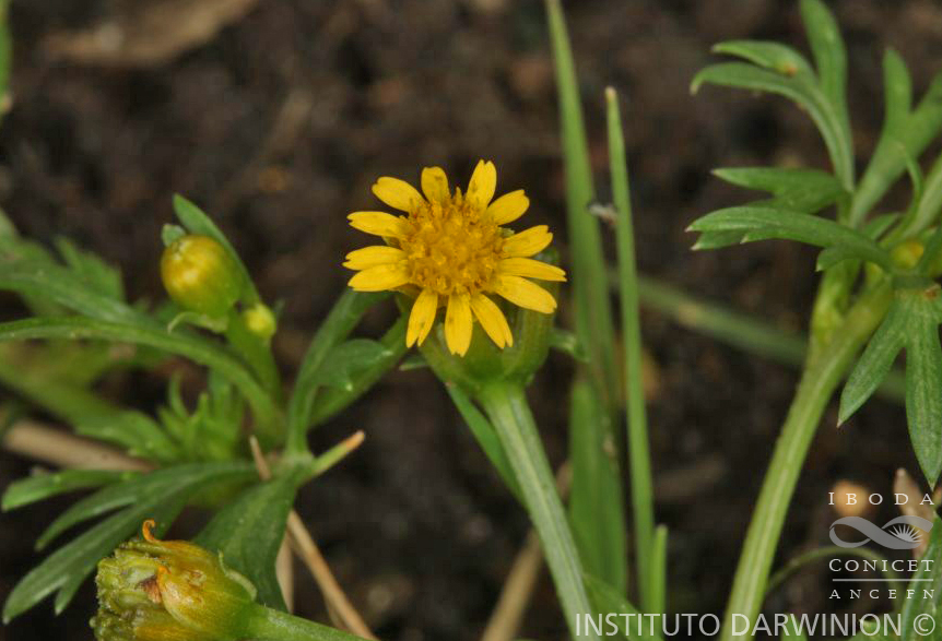Hierbas anuales, con varios tallos tendidos desde abajo, de 10-40 cm de largo, glabros. Hojas basales arrosetadas, con pecíolos hasta de 8 cm de largo y láminas de contorno ovado, 2- 3-pinnatisectas, con segmentos linear-lanceolados; hojas caulinares alternas, gradualmente menores. Capítulos solitarios en el extremo de las ramitas y axilares. Involucro acampanado, ca. 2,5 × 3,5 mm; filarios 2-seriados, oblongos, glabros. Receptáculo con páleas oblongo-lineares. Flores del margen pistiladas, con lígula oblongo-elíptica, de 1,5-2 mm de largo, entera o 2-dentada; flores del centro numerosas, perfectas, con corola tubulosa, ca. 2 mm de largo, 4-5-lobada. Aquenios dimorfos: los del margen cilíndricos-humeriformes, ca. 3 mm de largo, sin alas, con el cuerpo liso o rugoso, los del disco elípticos, ca. 3,5 × 2 mm, comprimidos, lisos o algo rugosos; cuando isomorfos todos anchamente alados y comprimidos.