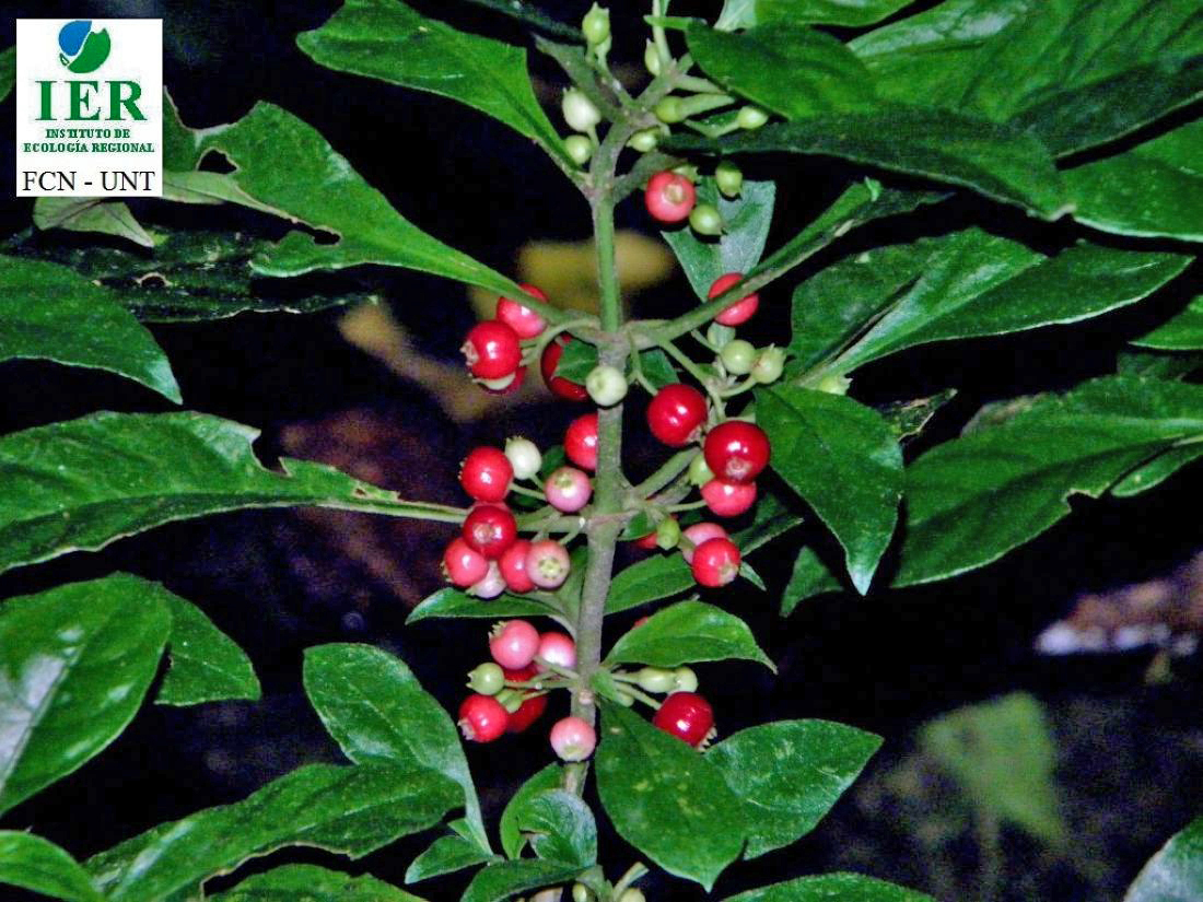 Arbusto de 1,5-2,5 m de alto; tallo terete, fistuloso, glabrescente o con escasa pilosidad rojiza de pelos curvos y antrorsos, entrenudos apicales herbáceos. Hojas elípticas, de 6-17 × 2-6 cm, ápice agudo o acuminado, base largamente atenuada, haz glabra o pubérula, envés con pubescencia acentuada sobre los nervios, membranáceas, nigrescente cuando seca; 5-7 nervios secundarios, alternos; pecíolos de 1-6,5 cm de largo, pubescentes; estípulas interpeciolares, triangulares, de 1-1,2 mm de largo, caducas, con coléteres en la cara interna. Inflorescencias axilares en tirsos paucifloros, ejes secundarios uníparos; brácteas presentes, a veces escamosas a nulas en los nudos apicales; pedúnculos de (4-)6-12 mm de largo. Flores con pedicelos de 4-8 mm de largo, pubescentes; hipanto obovoide, de 3,8-4,5 mm de largo, con costillas levemente marcadas, pilosas; cáliz con 4 lóbulos triangulares, de 3-6 mm de largo, glabrescentes y con escasos pelos en el dorso; corola 4-lobada, subrotácea, de 5-6 mm de largo, amarilla, tubo corolino de 1-1,2 mm de largo, lóbulos ovados, externamente con pelos escasos en la línea media dorsal, internamente glabros; estambres de 2,5-3 mm de largo, subsésiles; ovario 2-locular con numerosos óvulos; estilo de 5-6 mm de largo, estigma 2-fido. Fruto una baya subglobosa, de 5-6 mm de largo, roja o rojo-lilacina. Semillas poliédricas, de 0,5-0,6 mm de largo, retículo-foveadas, lúmenes microscópicamente reticulados.