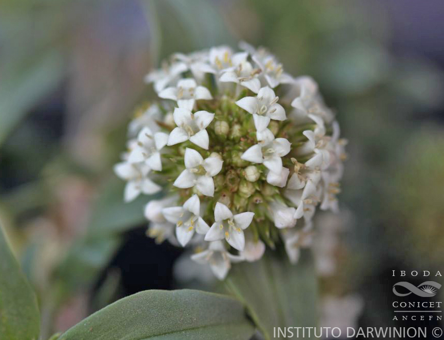 Sufrútice de 10-50 cm de alto, ramificado, erecto, postrado o decumbente; tallos vilosos a glabrescentes. Hojas sésiles; láminas elípticas o lineares, de 0,7-3,5(-10) × 1,5-10(-20) mm, ápice agudo u acuminado, base atenuada, vilosas o hirtas; estípula de 2-3,5 mm de largo, pubérula, 3-13 fimbrias, de 2-7 mm de largo, glabras o ciliadas. Inflorescencias en glomérulos terminales, raro subterminales, de 10-20 mm de diámetro. Flores brevemente pediceladas; cáliz 4-lobado, 2 lóbulos mayores angostamente elípticos, de 3,5-4 mm de largo, aristados, los 2 menores triangulares, de 1,5-2 mm de largo; corola de 3,5-5,5(-7) mm de largo, externamente glabra a pubescente, internamente con un anillo de pelos moniliformes en la mitad inferior del tubo, papiloso-pubescente en los lóbulos; estilo incluso hasta exerto en una misma flor; estambres subinclusos, anteras de 0,6-1 mm de largo. Fruto una cápsula elipsoide, de 1,2-3 mm de largo, la mitad superior hírtula o pubérula, pedicelada. Semillas obovoides o subobovoides, de 1-2 mm de largo, cara ventral plana con fosita rectangular cubierta con estrofíolo con rafidios visibles, con lóbulo inferior desarrollado, dorso convexo, retículo-areolado.