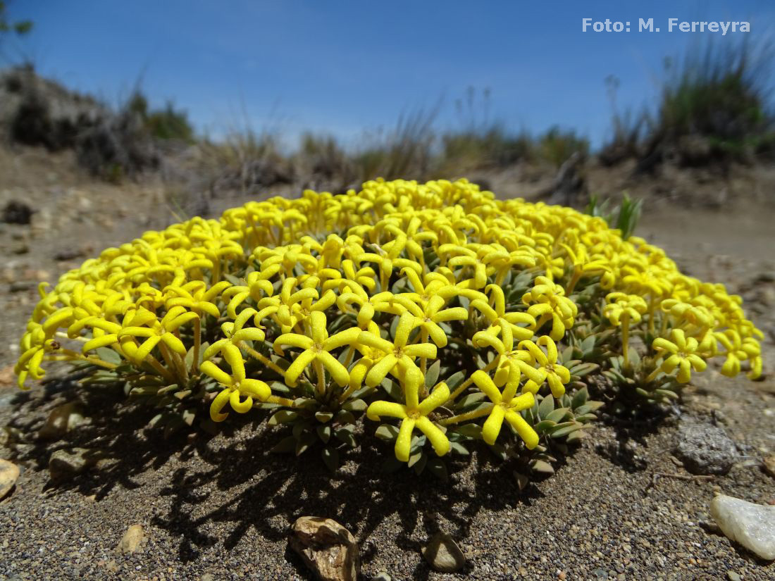 Habita en suelos pedregosos a lo largo de la cordillera, desde la provincia de Santiago en Chile y norte de Neuquén en la Argentina hasta Tierra del Fuego; también se la halla en la meseta patagónica a lo largo de la costa atlántica. Crece desde el nivel del mar hasta los 3300-3500 m s.m.