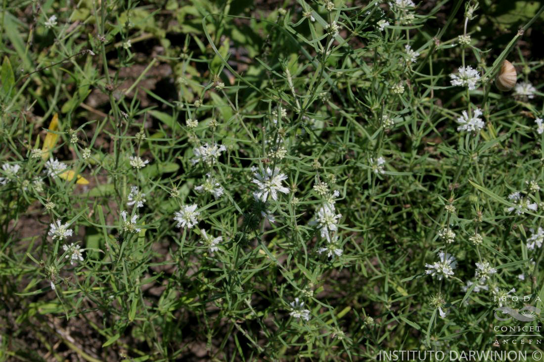 Sufrútices de 40-130 cm de alto, erectos, decumbentes, a veces subcespitosos; tallos simples o muy ramificados desde la base, cilíndricos en la base, subtetrágonos o 4-gonos hacia el ápice, glabros, raro pubérulos o finamente pubescentes, a veces con los ángulos más pilosos. Hojas pseudoverticiladas, sésiles o subsésiles, láminas lineares o linear-lanceoladas, raro angostamente-elípticas o elípticas, de 10-60 × 3-8 mm, base atenuada, ápice agudo, apículado o mucronado, glabras, a veces con pelos cerca de la base en cara adaxial, cara abaxial glabra o con pelos escasos sobre los nervios; estipula de 0,5-2 mm de largo, glabrescente, pubérula o pubescente, con 3-12 fimbrias de (0,5-)1-5 mm de largo, glabras. Inflorescencias con crecimiento indeterminado, glomérulos, raro cimas, generalmente multifloros, a veces con 1-3 flores, (6-)10-30 por rama florífera, axilares, de 8-15 mm de diámetro; entrenudos de 20-50 mm de largo, glabros, glabrescentes, pubérulos o finamente pubescentes; brácteas 2(-3), foliáceas; bractéolas filiformes, ápice glandular. Flores sésiles o subsésiles, raro con pedicelos de 3 mm de largo; hipanto pubérulo o pubescente, más marcado en el tercio superior; cáliz con 2(-3) lóbulos de (1,5-)2-4 mm largo, con 2-3 dientes intercalares, glandulares, tubo nulo o de 0,1 mm de largo; corola blanca, raro con lóbulos lilas, de 5-8(-9) mm de largo, internamente con anillo de pelos moniliformes en el tercio inferior del tubo, externamente glabra, pubérula o pubescente, lóbulos un tercio o un cuarto la longitud del tubo; estambres iguales o más largos que los lóbulos corolinos; anteras de 0,8-1 mm de largo; estilo de 5-8,5 mm de largo; estigma 2-fido; disco nectarífero entero o 2-partido. Fruto una cápsula de 1-1,5 mm de largo, pubérula, pubescente, raro glabra o glabrescente. Semillas elipsoides, de 0,9-1,1 mm de largo, cara ventral longitudinalmente surcada, parcialmente cubierta por el estrofíolo.