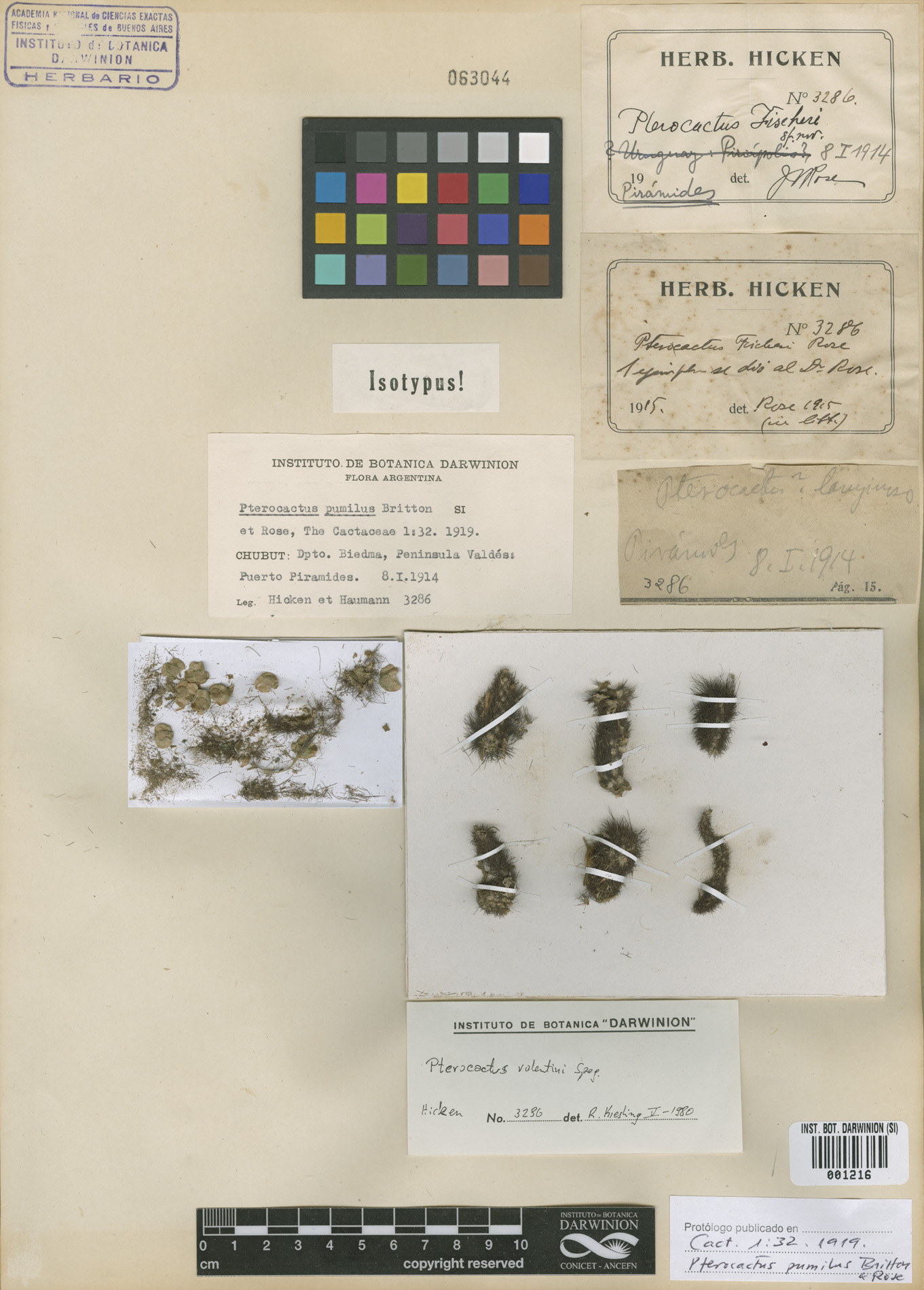 Observaciones: El primero de los dos ejemplares citados por Spegazzini en la descripción original (Chubut, Trelew, nov. 1897, leg. J. Valentín) no se ha encontrado.