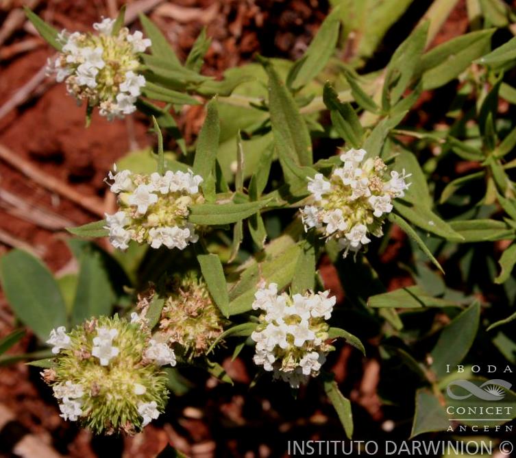 Hierba o sufrútice erecto, a veces con ramas decumbentes hasta de 60 cm de alto; tallos ramificados, cilíndricos o 4-gonos, glabrescentes o pubescentes, con pelos blanquecinos en toda la superficie del tallo o sólo en los ángulos. Hojas sésiles o cortamente pseudopecioladas, angostamente elípticas u ovadas, de 6-30 × 1-8 mm, pseudoverticiladas, coriáceas, pubescentes en ambas caras o glabras en el haz y glabrescentes en el envés, ápice agudo y base atenuada. Vaina estipular obtriangular, de 1-2 mm de largo, pubescente; lacinias 5-6, de 3-5 mm de largo. Inflorescencias con el glomérulo apical, a veces con 1 glomérulo subapical, de 1-1,5 mm ancho; brácteas 4-6, reflexas, iguales o más cortas que el diámetro del glómerulo. Flores 4-meras, sésiles; hipanto turbinado, de 1-1,5 mm de largo, densamente pubescente en el tercio superior; cáliz 4-partido, lóbulos angostamente triangulares, de 1,5-3 mm de largo; corola infundibuliforme, de 4-5 mm de largo, blanca, externamente con pelos notorios sobre el dorso de los lóbulos, internamente con pelos muy cortos dispersos sobre los lóbulos y con un anillo de pelos moniliformes en la mitad del tubo; estambres con anteras de 0,5-1,3 mm de largo, blanquecinas a veces azuladas; estilo de 3,5-4,5 mm de largo, estigma 2-lobado.Fruto una cápsula subelipsoide, de 2,5-3,2 mm de largo, densamente pubescente en el tercio superior, valvas dehiscentes. Semillas ovoides, de 1,2-2,7 × 0,4-0,9 mm, cara ventral con surco longitudinal profundo cubierto por el estrofíolo y elaiosoma blanquecino en el tercio apical no sobrepasando el ápice de la semilla; exotesta retículo-foveada.