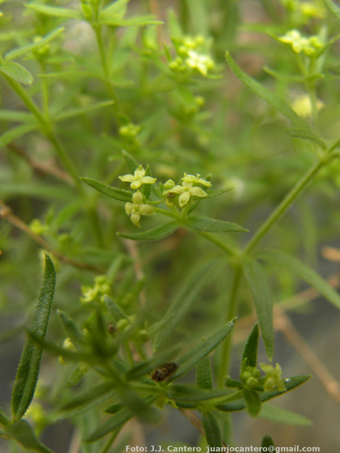 Sufrútices apoyantes, escandentes, dioicas; tallos generalmente frágiles; entrenudos de 20-50 mm de largo, 4-angulares, escabrosos, especialmente en los ángulos. Hojas 4-verticiladas, sésiles; láminas angostamente elípticas o angostamente ovadas, de 8-25 × 2-4 mm, escábridas, especialmente en la cara abaxial, los márgenes y sobre los nervios; con 1 nervio visible, ápice agudo, con una zona glandular translucida; el margen débilmente revoluto. Inflorescencias axilares, laxas, 1-2 cimas por nudo, cada ramita 1-2(-3)-flora; brácteas 2-4, generalmente lineares, de 3-11 × ca. 1 mm, foliáceas, ubicadas en la base de los pedicelos, reduciéndose en tamaño hacia el ápice de la inflorescencia. Flores imperfectas; pedicelo de 2-9 mm de largo, frágiles, con papilas retrorsas; hipanto de las flores pistiladas con pelos largos, antrorsos, marcadamente reducido y pubérulo en las flores estaminadas; corola de 1,5-2 mm de diámetro en las flores estaminadas y de 1,2-1,5 mm de diámetro en las pistiladas; lóbulos ovados, internamente glabros, externamente pubérulos, amarillas; estilo de 0,6 mm de largo en las flores pistiladas, reducido en las estaminadas. Fruto seco, de 2-2,6 mm de largo, separado en dos mericarpos a la madurez, con pelos largos rectos o antrorsos, menores al diámetro del fruto.