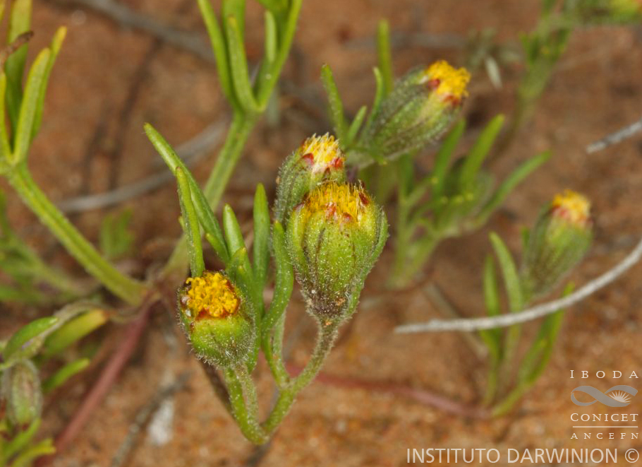 Hierbas anuales, pigmeas, hasta de 10 cm de alto, con tallos tendidos o ascendentes, hirsutos. Hojas opuestas; pecíolos con alas angostas; láminas de 3-12 mm de largo, profundamente partidas en 3 segmentos lineares a veces el central a su vez 3- partido, con pelitos ralos hacia la base peciolar. Capítulos pedunculados, terminales o axilares; pedúnculo de 3-30 mm de largo. Involucro acampanado, de 6-10 × 3-4 mm; filarios externos 2-3, oblongos u oblanceolados, herbáceos, ciliados, los internos más cortos, elípticos, glabros. Flores dimorfas, las del margen 3- 5, pistiladas, con lígula amarilla, elíptica, de 2-3 mm de largo, 3- dentada; flores del centro 7-10, perfectas, con corola tubulosa, amarilla, ca. 3 mm de largo. Aquenios del margen obovoides, de 4-6 × 2-3 mm, convexos, estriados y con ala angosta, sin papus; aquenios del centro fusiformes, de 7-9 mm de largo, oscuros, estriados, con rostro corto y grueso. Papus formado por 2 aristas ca. 2 mm de largo, retrorso-pilosas, con escamitas intermedias.