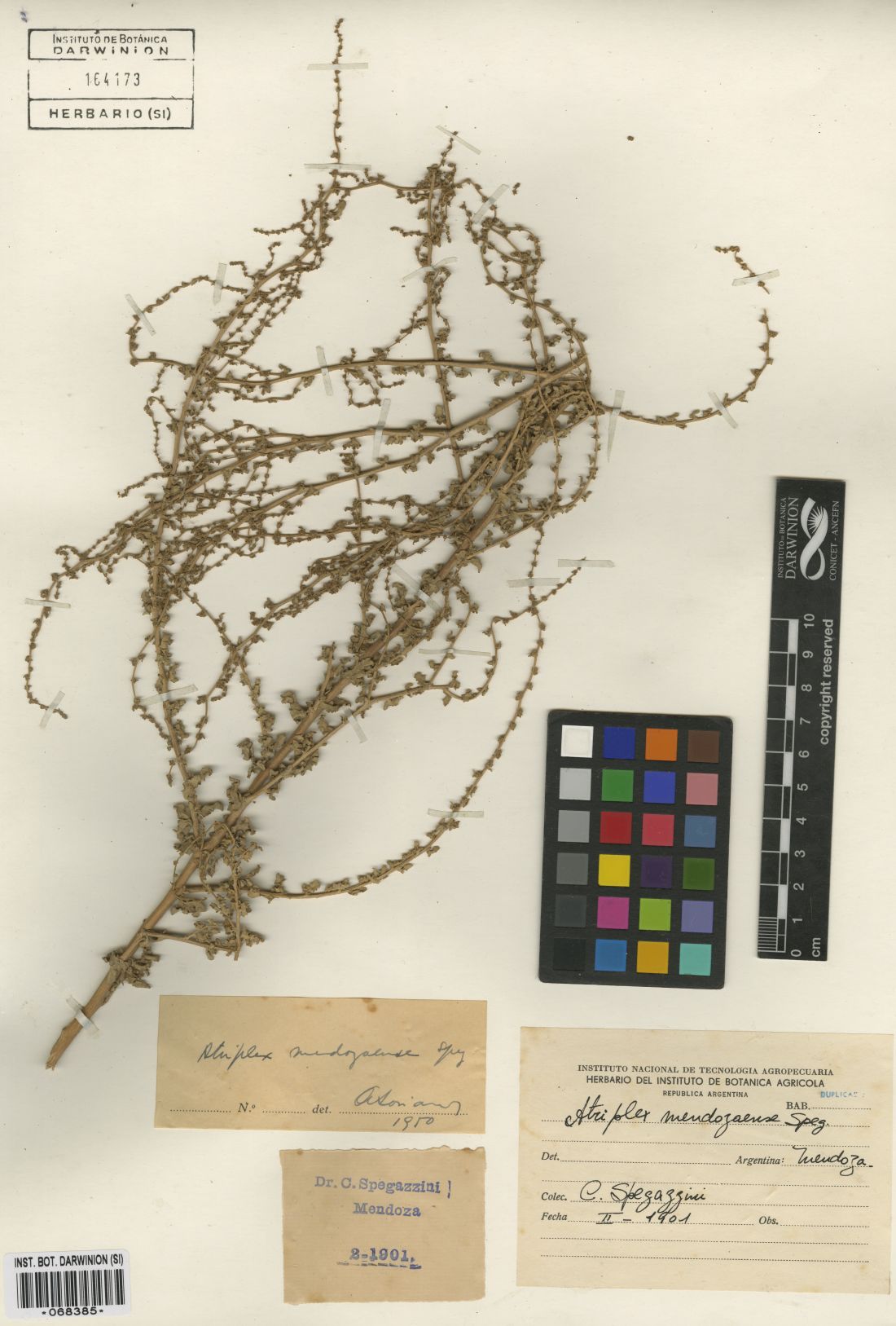 Material Tipo: Argentina. Mendoza. Dpto. Las Heras. "In aridissimis sabulosis salsis inter Mendoza et Villavicencio", Feb 1901, C. L. Spegazzini s.n. (lectotipo, LP 003110, designado por N. Brignone et al., Austr. Syst. Bot. 29: 341. 2016; isolectotipo, LP 003111; probables isolectotipos, SI 068384, SI 068385).