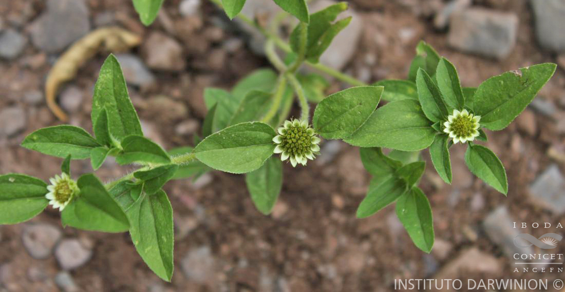 Hierbas anuales, con tallos ramosos desde abajo, de 10-20 cm de alto, estrigosas. Hojas ovadas o lanceoladas, de 1,5-2,8 × 0,7-1,6 cm, enteras o crenuladas, híspidas, principalmente sobre las nervaduras; pecíolos de 5-9 mm de largo. Capítulos sésiles, solitarios en el extremo de las ramitas. Involucro hemiesférico, ca. 5 × 8-9,5 mm, por lo general con 2 filarios foliáceos grandes y otros 2 apenas desarrollados, los restantes, en 2 series, siendo anchamente ovados, ciliados en el margen y glabros en el dorso. Receptáculo con páleas lanceoladas, carenadas, ciliadas. Flores del margen ca. 13, pistiladas, corola persistente, tubo ausente, lígula triangular-ovada con el ápice 2-dentado y de color amarillo o blanco; flores del centro perfectas, con corola tubulosa ca. 2 mm de largo, cuya porción basal está engrosada y lleva cerdas breves. Aquenios del margen lisos, trígonos, ca. 4 mm de largo, con 3 aristas gruesas divergentes; los del centro tetrágonos, pero algo comprimidos lateralmente, de 3,2-3,4 mm de largo, rugoso-tuberculados y con pelitos breves esparcidos, 2-4-aristados.