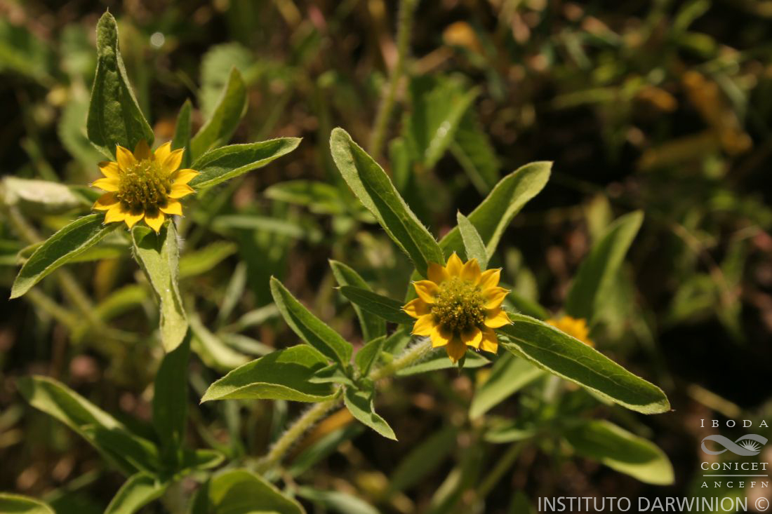 Hierbas anuales, con tallos ramosos desde abajo, de 10-20 cm de alto, estrigosas. Hojas ovadas o lanceoladas, de 1,5-2,8 × 0,7-1,6 cm, enteras o crenuladas, híspidas, principalmente sobre las nervaduras; pecíolos de 5-9 mm de largo. Capítulos sésiles, solitarios en el extremo de las ramitas. Involucro hemiesférico, ca. 5 × 8-9,5 mm, por lo general con 2 filarios foliáceos grandes y otros 2 apenas desarrollados, los restantes, en 2 series, siendo anchamente ovados, ciliados en el margen y glabros en el dorso. Receptáculo con páleas lanceoladas, carenadas, ciliadas. Flores del margen ca. 13, pistiladas, corola persistente, tubo ausente, lígula triangular-ovada con el ápice 2-dentado y de color amarillo o blanco; flores del centro perfectas, con corola tubulosa ca. 2 mm de largo, cuya porción basal está engrosada y lleva cerdas breves. Aquenios del margen lisos, trígonos, ca. 4 mm de largo, con 3 aristas gruesas divergentes; los del centro tetrágonos, pero algo comprimidos lateralmente, de 3,2-3,4 mm de largo, rugoso-tuberculados y con pelitos breves esparcidos, 2-4-aristados.