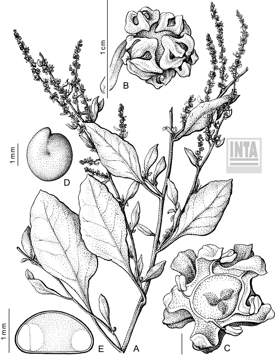 Hierbas anuales, bienales o perennes, erectas o postradas. Raíces robustas, fibrosas, ramificadas y no tuberosas. Tallos erectos o procumbentes, ± ramificados, estriados, de 10-60 cm de largo. Hojas alternas, dimorfas: las basales largamente pecioladas, estrechamente ovadas o deltoides, de 20-30 × 10-15 cm, crespas en la cara adaxial, con nervaduras muy marcadas en la cara abaxial; margen entero u ondulado; base cuneada, truncada o ligeramente cordada; ápice obtuso; las hojas caulinares alternas, más pequeñas que las basales, ovadas u oblongo-lanceoladas; margen entero; base decurrente; ápice atenuado. Inflorescencias en glomérulos 2-3-floros; sépalos lineares o estrechamente oblongos, que se vuelven coriáceos e incurvos en el fruto. Frutos pixidios, de 4-5 × 3-4 mm. Semillas de 1,5-2 mm de diámetro.