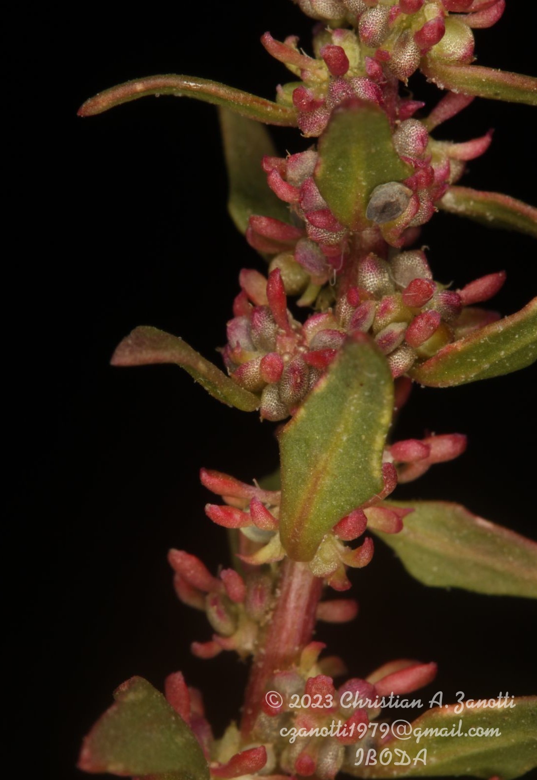 Hierbas anuales, farinosas cuando son jóvenes, glabras a la madurez. Tallo ramificado desde la base; ramas erectas o postradas en su parte inferior, de 5-20(-50) cm de largo, dispuestas de manera rosulada. Hojas alternas, lanceoladas, angostamente triangulares o elípticas, o lineares, de 1-3(-4) cm × 2-15(-25) mm, con 2 lóbulos laterales cerca de la base; pecíolo hasta de 6 cm de largo en las hojas basales, disminuyendo notablemente en las hojas apicales; margen entero, a veces con algunos dientes; base atenuada o cuneada; ápice obtuso o redondeado. Flores bisexuales; sépalo 1, espatulado u obtuso; estambre 1; ovario globoso, estigmas 2. Frutos utrículos, de 1,1-1,5 mm de largo; pericarpo membranáceo, no esponjoso, blanquecino, generalmente no adherente a la semilla. Semillas verticales, castañas, negras o rojizas, globosas; tegumento alveolado.